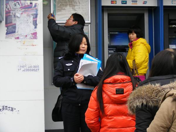 27日上午,雪后的天气特别寒冷,耿警官来到我院后,立即带领保卫处治安消防科工作人员前往学生公寓进行检查。每到一栋学生公寓,耿警官都详细询问管理员是否知晓防骗、防盗知识,在醒目位置是否张贴有防骗、防盗安全提示;对进出学生公寓的学生,耿警官都不厌其烦的进行防骗、防盗方面的宣传,提醒学生尤其在网上购物及汇款时,一定要谨慎,防止上当受骗。她还提出在防盗方面的建议:学生寝室里面最好安装保险箱,外出时将笔记本电脑及贵重物品予以保存。此外,耿警官还对学院的自动取款机也进行了检查,她认真负责的敬业精神和扎实的工作作风,深受学生们的感动。
