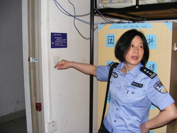 【图片新闻】辖区派出所警官检查学生公寓安全防范措施