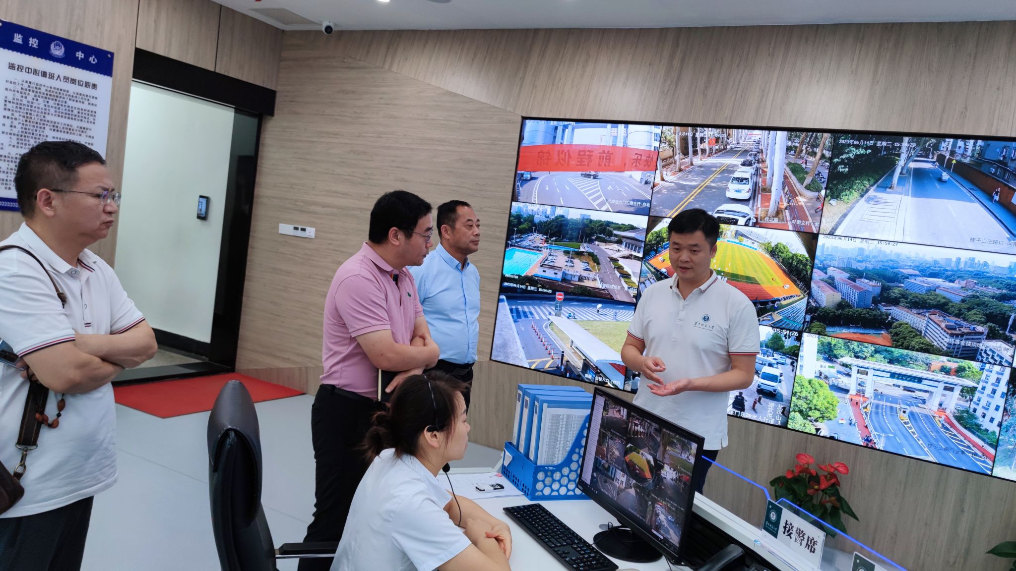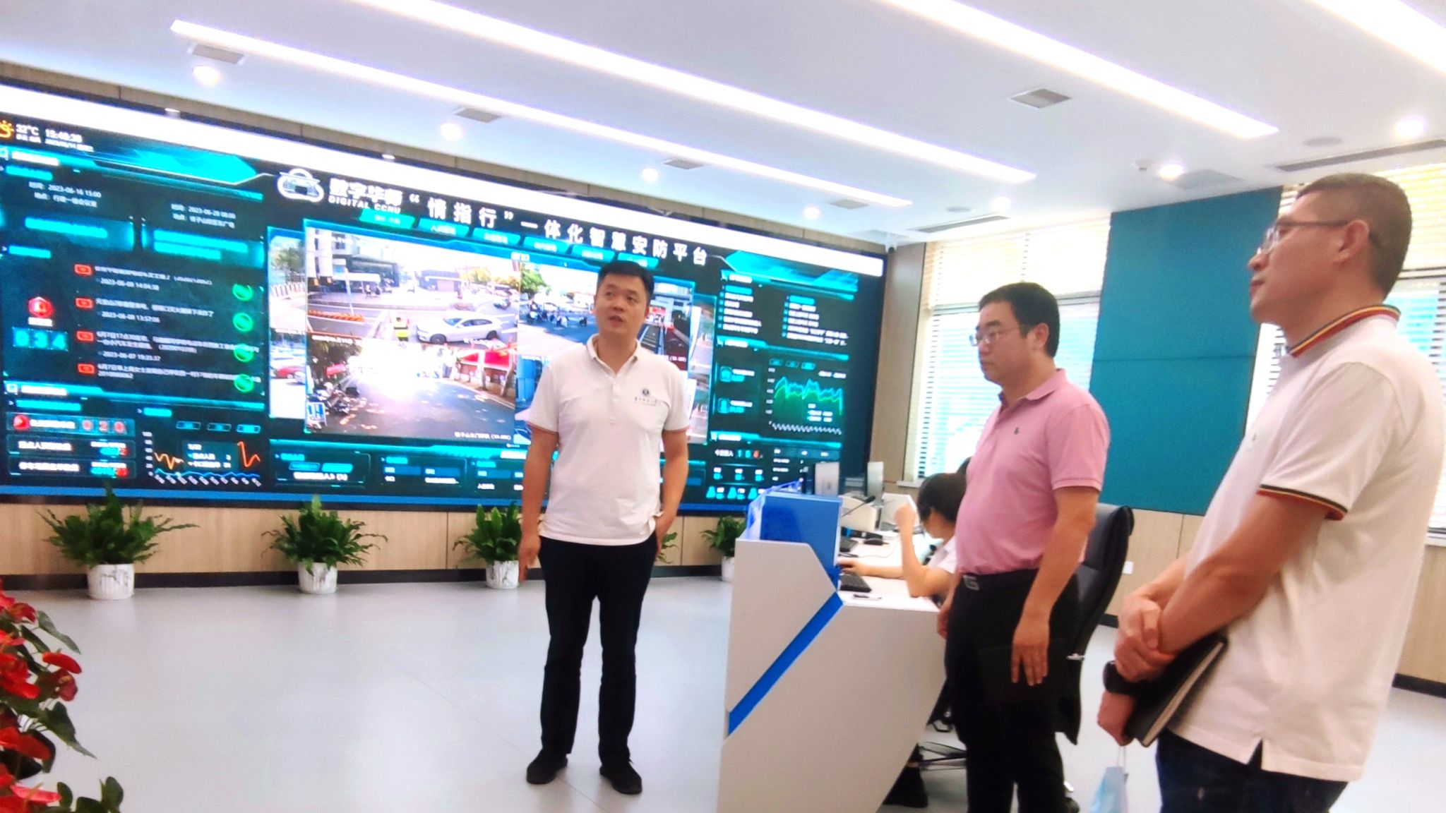 为了进一步推进我校平安校园建设,积极探索平安校园建设新思路、新方法,党委保卫工作部部长叶志强、图书馆馆长赵传斌及学生事务部副部长郝志康一行,于2023年6月14日赴华中师范大学调研平安校园“情指行”一体化智慧安防系统建设经验。