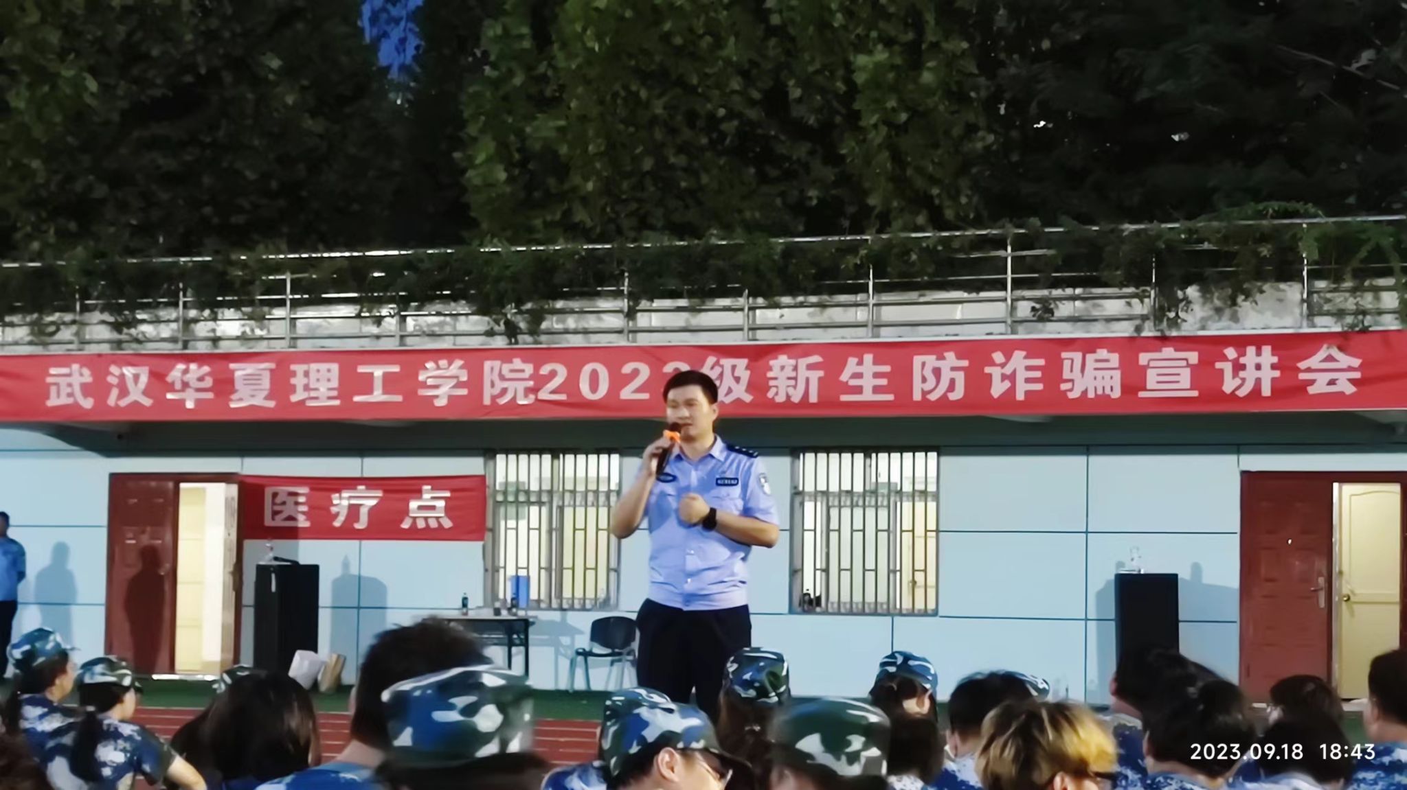 为提高全体2023级新生预防电信网络诈骗意识和能力,筑牢校园防诈防骗安全防线,9月18日晚6点半,我校特邀关南派出所副所长董盼在学校足球场面向2023级3000余名新生传授反电信网络诈骗知识。