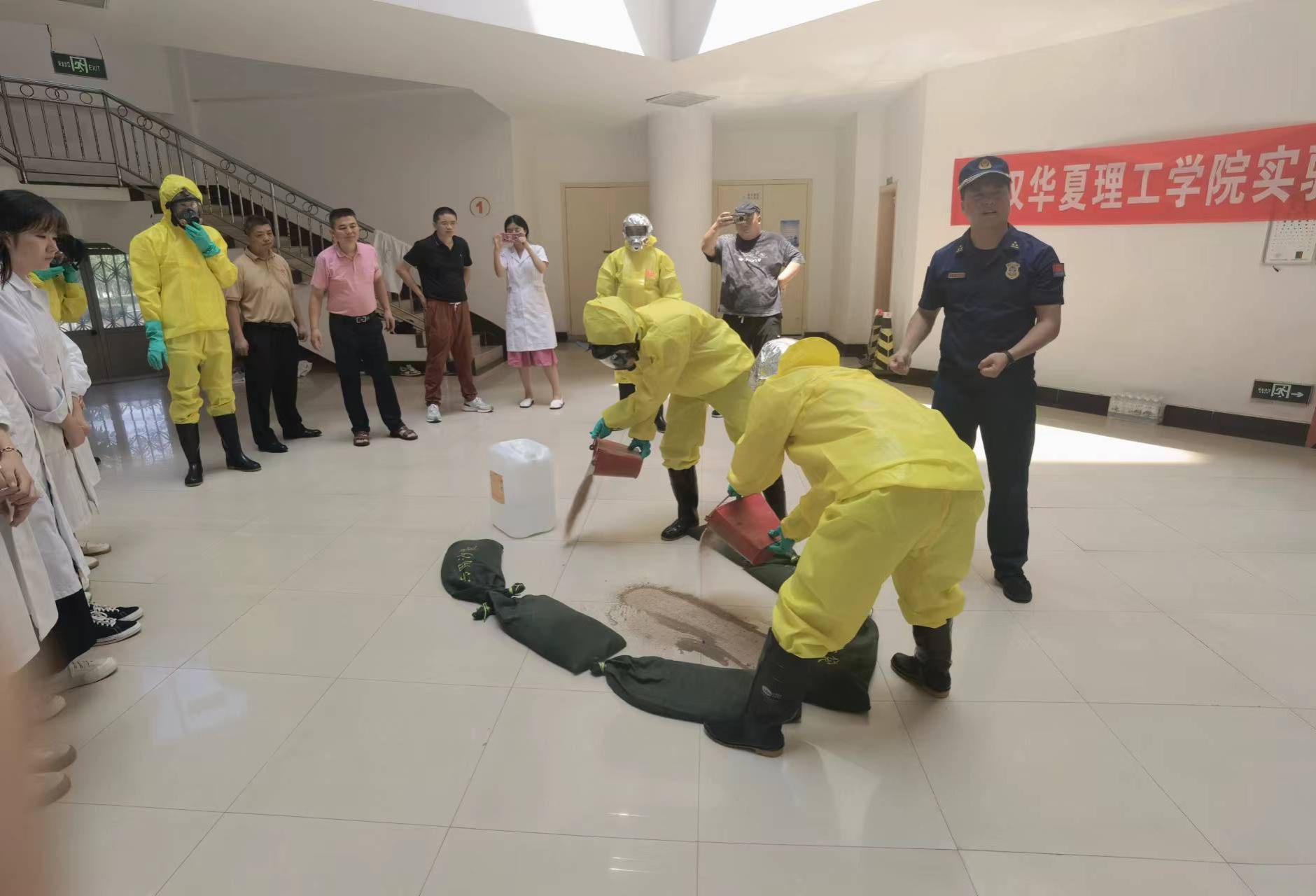 为提高实验室师生安全防护技能及危化品突发事件应急处置能力,全面提升学校实验室安全管理水平,6月13日上午,学校在化药实验楼开展实验室危险化学品泄露应急演练活动。本次活动由保卫部和教务部组织,东湖高新区关东消防救援站全程进行指导,保卫干事和制药学院师生配合完成。