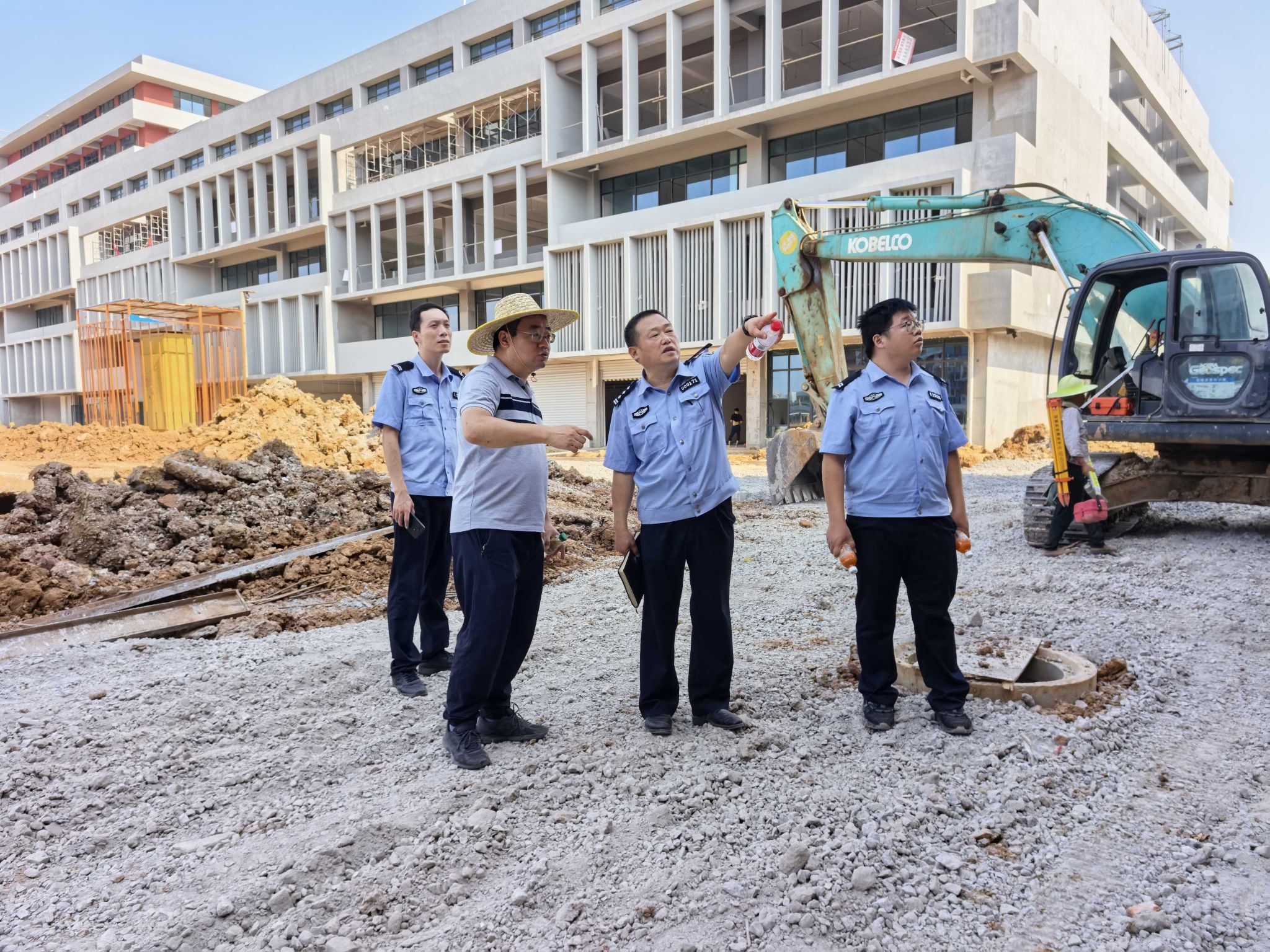 7月8日下午,鄂州市公安局梁子湖区公安分局梧桐湖派出所副所长李知奇带领干警和辅警到梧桐湖校区进行走访,李副所长对新校区建设过程中应注意的安全事项进行了指导,保卫部部长叶志强就新校区建设过程中的安全防范措施和周边复杂环境问题和李副所长进行了交流。
