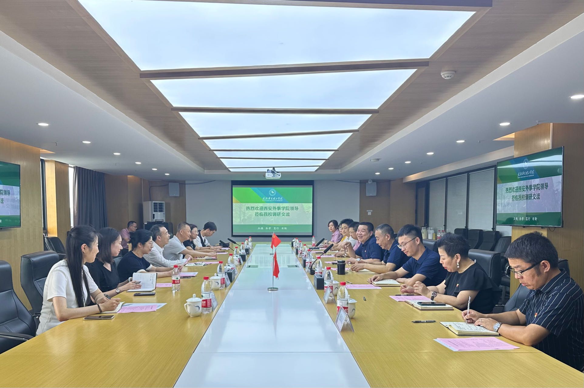 7月28日,西安外事学院党委书记闵小平、副书记董宇龙一行8人来我校调研交流。我校党委书记丁德智,党委副书记、副校长李海民于综合楼1204会议室会见并座谈,相关职能部门负责人、学院书记参加。会议由丁德智主持。