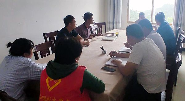 与村两委班子交流商议村级事务