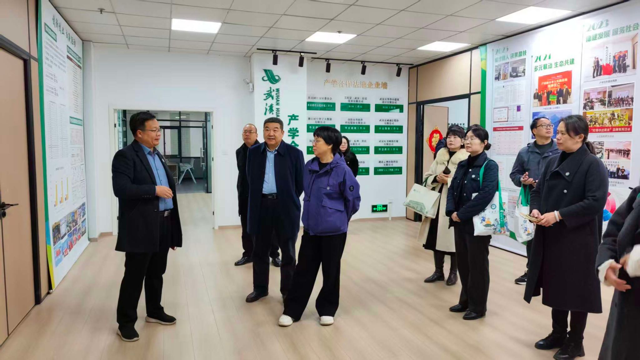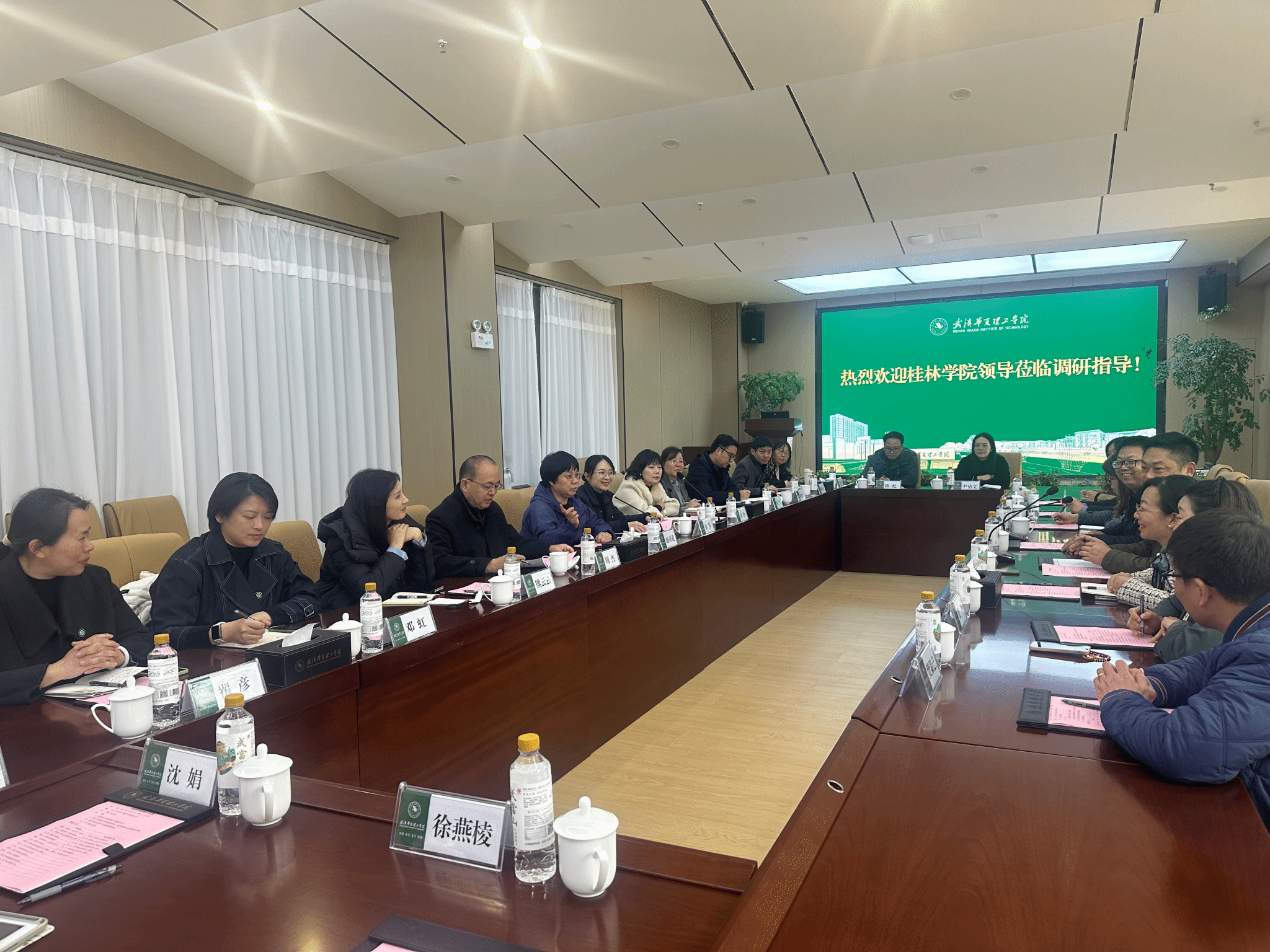 我校党委书记丁德智在相关部门负责人的陪同下,带领桂林学院一行先后参观了我校湖北省学生工作示范团队、湖北省党建工作“标杆院系”美育成果展以及“一站式”学生社区等。在参观学生工作示范团队成长之路辅导员工作室看到,该团队以“立德树人”为根本任务,构建了“精细化管理、个性化服务、品牌化建设”的学生工作体系,打造的“朋辈帮扶”“生涯导航”等特色品牌活动,培养的学生在学科竞赛、志愿服务等领域屡创佳绩,充分彰显了示范团队的引领作用;走进美育成果展现场,一幅幅构思精巧的书画作品、一件件独具匠心的手工艺品、一段段精彩纷呈的文艺汇演视频,全方位展现了标杆院系“党建+美育”的融合育人成果,桂林学院对我校党建工作的规范化、特色化水平给予高度评价;在“一站式”学生社区党建服务站,查看了学生党员志愿服务、红色文化活动开展情况,对我校将党建工作延伸至学生生活一线的做法表示赞赏。