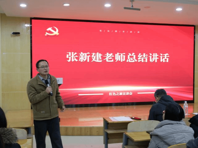 最后,张新建老师作总结讲话,要求全体学生党员以中央八项规定精神为指引,坚守入党初心、发挥先锋模范作用、坚持以学为先,以实际行动践行党员教育核心要求,为学校高质量发展与国家建设贡献青春力量。
