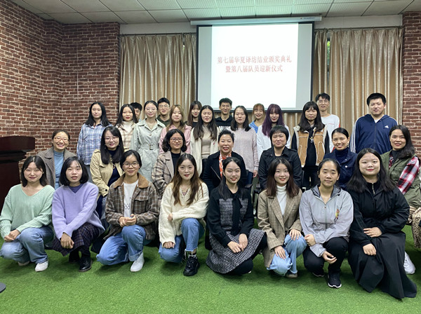 10月7日中午13:00点,我校华夏译坊在语言文学楼313处举行了第七届结业颁奖典礼暨第八届队员迎新仪式。国际交流合作部部长、国教育学院院长、华译坊创始人肖凤华,外国语学院教学办主任吴敏,学院学工办主任王英,华夏译坊指导老师杜英、江倩、刘潇、梁思、陈丹丹、陈黎以及华夏译坊第七届、第八届全体成员参与了该项仪式。