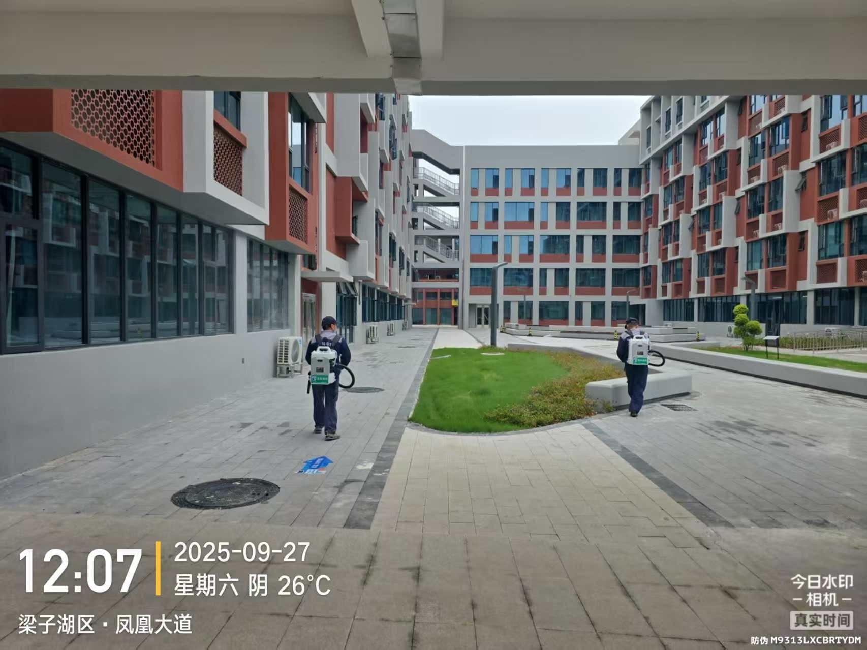 专业消杀团队对军训场地、教学楼周边、宿舍区等重点区域进行全面消杀,尤其针对蚊虫易滋生区域,如草丛、排水沟等,采用环保型消杀药剂,有效降低蚊虫密度。