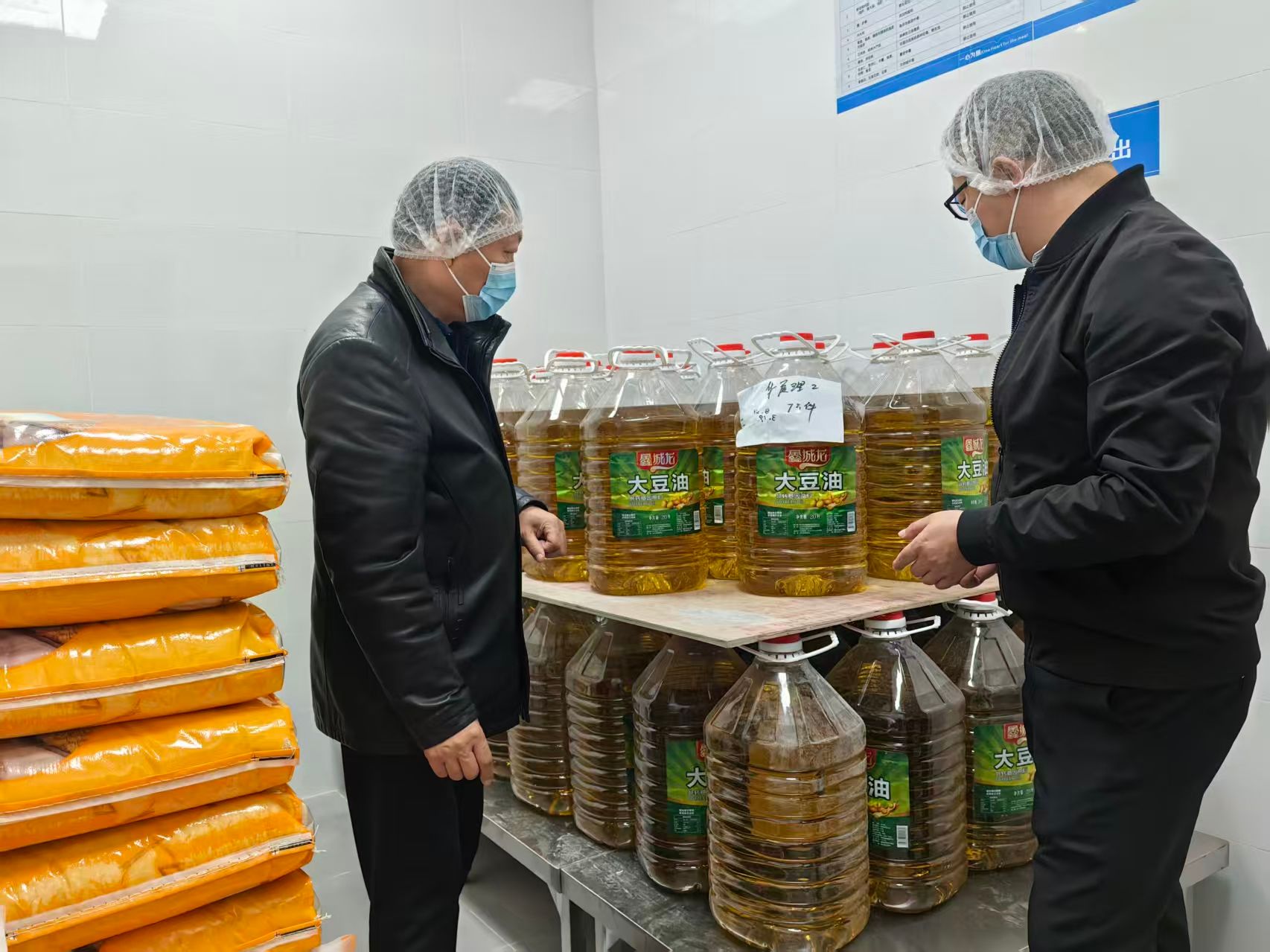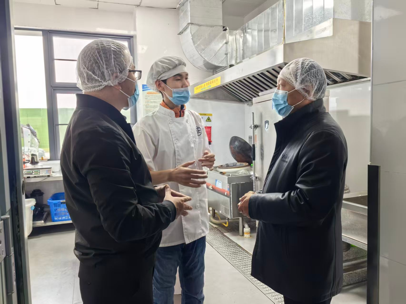 在检查食堂时,检查人员主要核查了从业人员健康证、食品经营许可证等证照是否齐全有效;仔细查阅食材采购台账、索证索票及食品留样记录,确保食材来源可溯、质量可控;实地查看环境卫生、餐具清洗消毒流程,检查生熟食品容器是否分区标识、“三防”设施是否完好;对于食品添加剂采取“双人双锁,专人领用”的管理模式,大宗商品选用品牌高标准产品,专有供应链配送;逐一查看食品储存条件,确认食材是否离墙离地存放,散装食品标签是否完整,杜绝过期、变质食品流入餐桌,从源头上把控食品安全关。