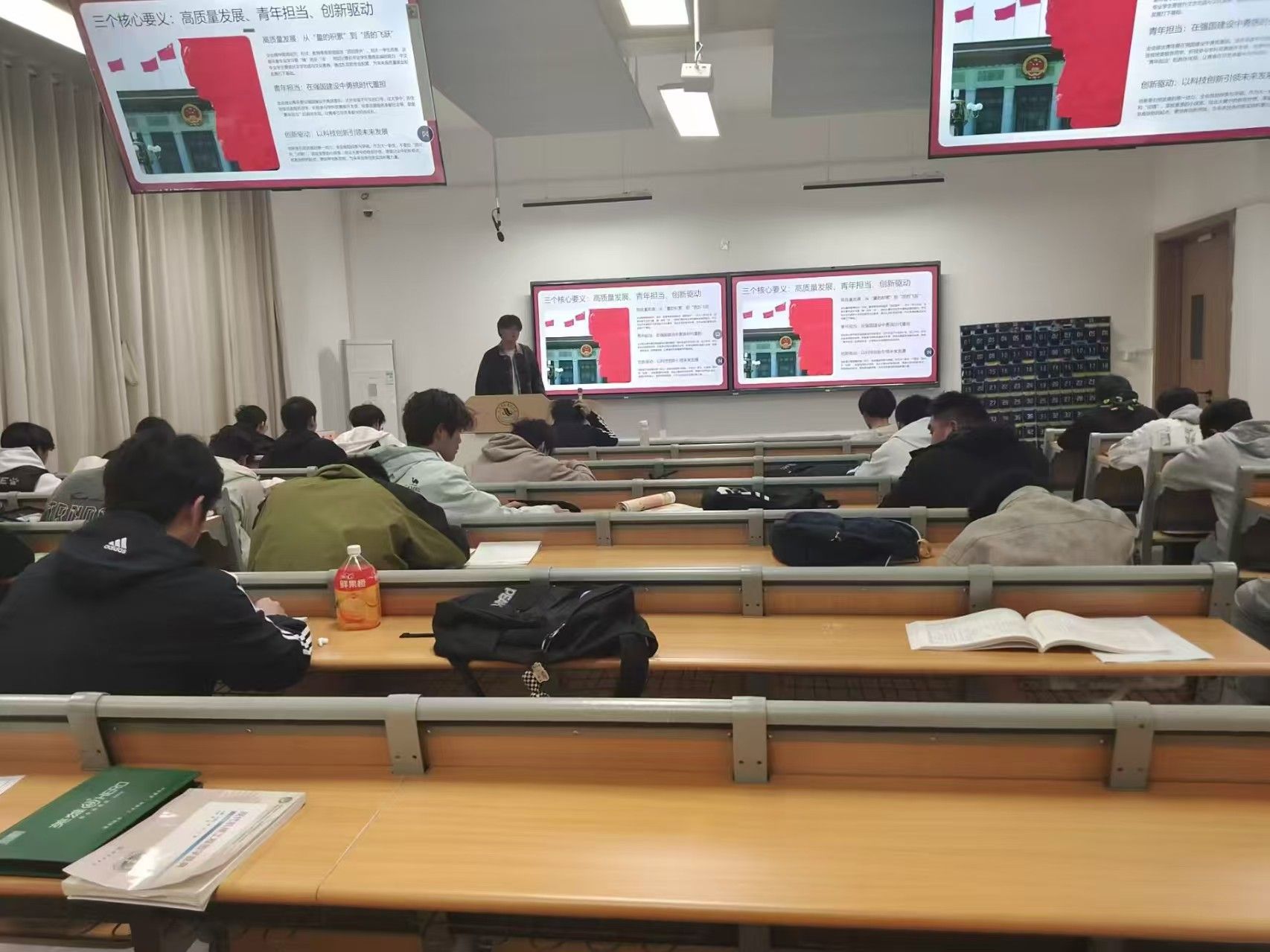 深入学习贯彻党的二十届四中全会精神,班级团支书围绕“学习全会精神 凝聚奋发力量”开展主题班会,全班同学共同参与这场思想淬炼与责任传递的青春课堂。