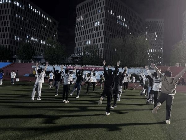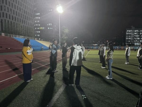 4月8日晚八点,操场上充满活力与热情。即使是在一天的学习过后,大家也同样充满热情的训练。团总支副书记、学生会指导老师昌仪琳与学生会负责人等一行人,齐聚一堂,共同见证了运动会健美操成员们的精彩训练。