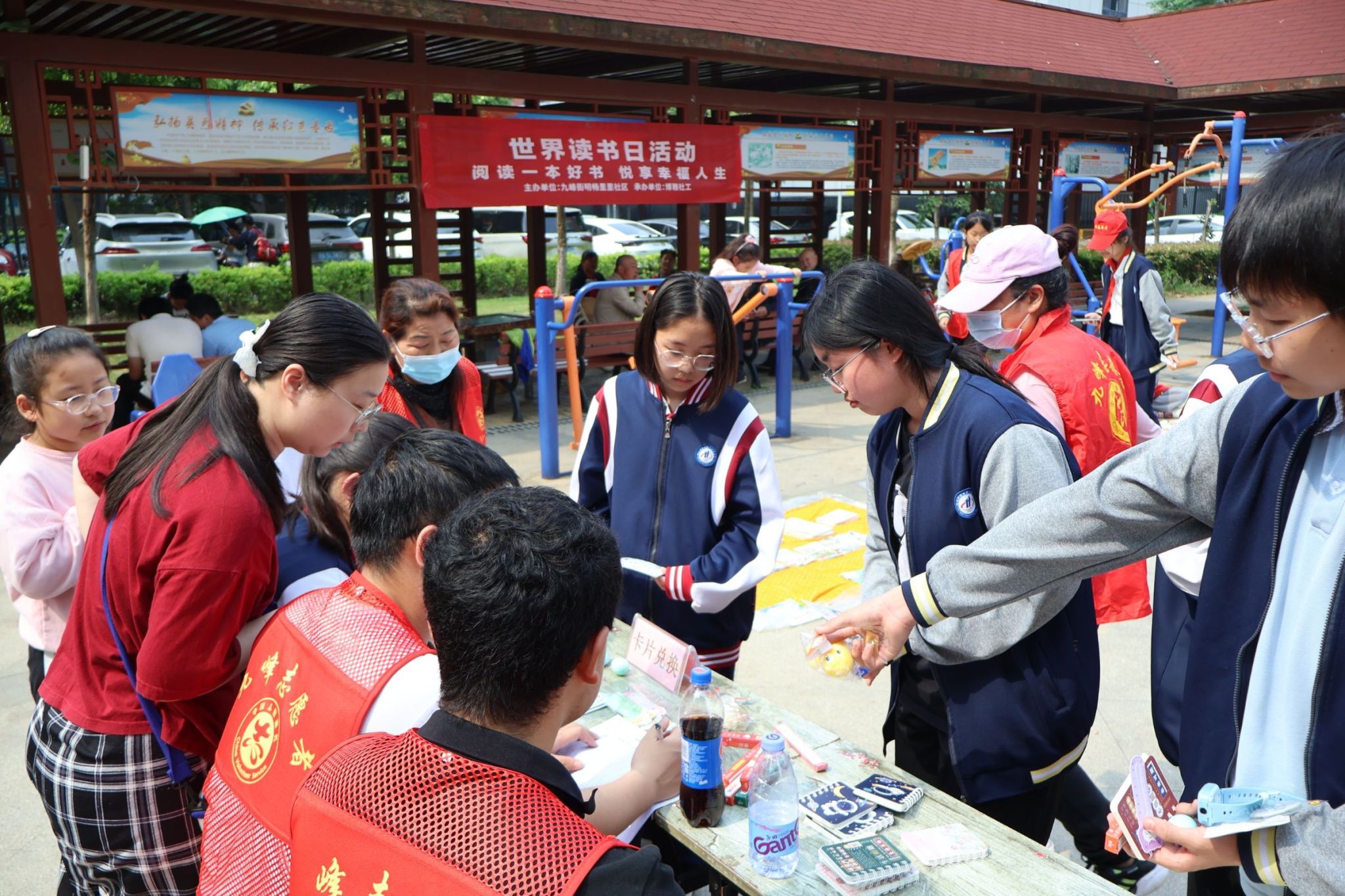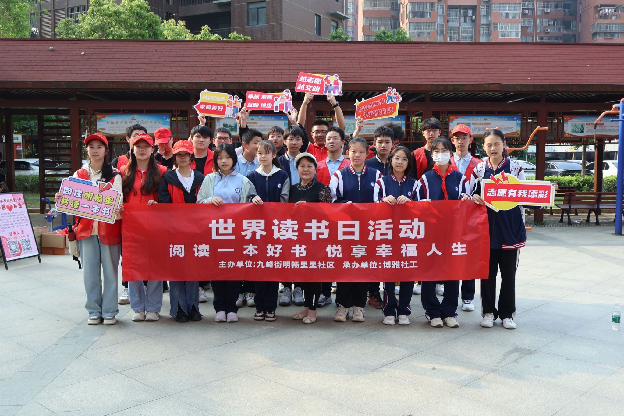 2024年 4月21日,我校土木建筑工程学院青年志愿者协会于武汉东湖高新区九峰街道明畅里社区与武汉博雅社工、光谷一初青年志愿者和居民志愿者们一同开展了“阅读一本好书 悦享幸福人生”世界读书日活动。