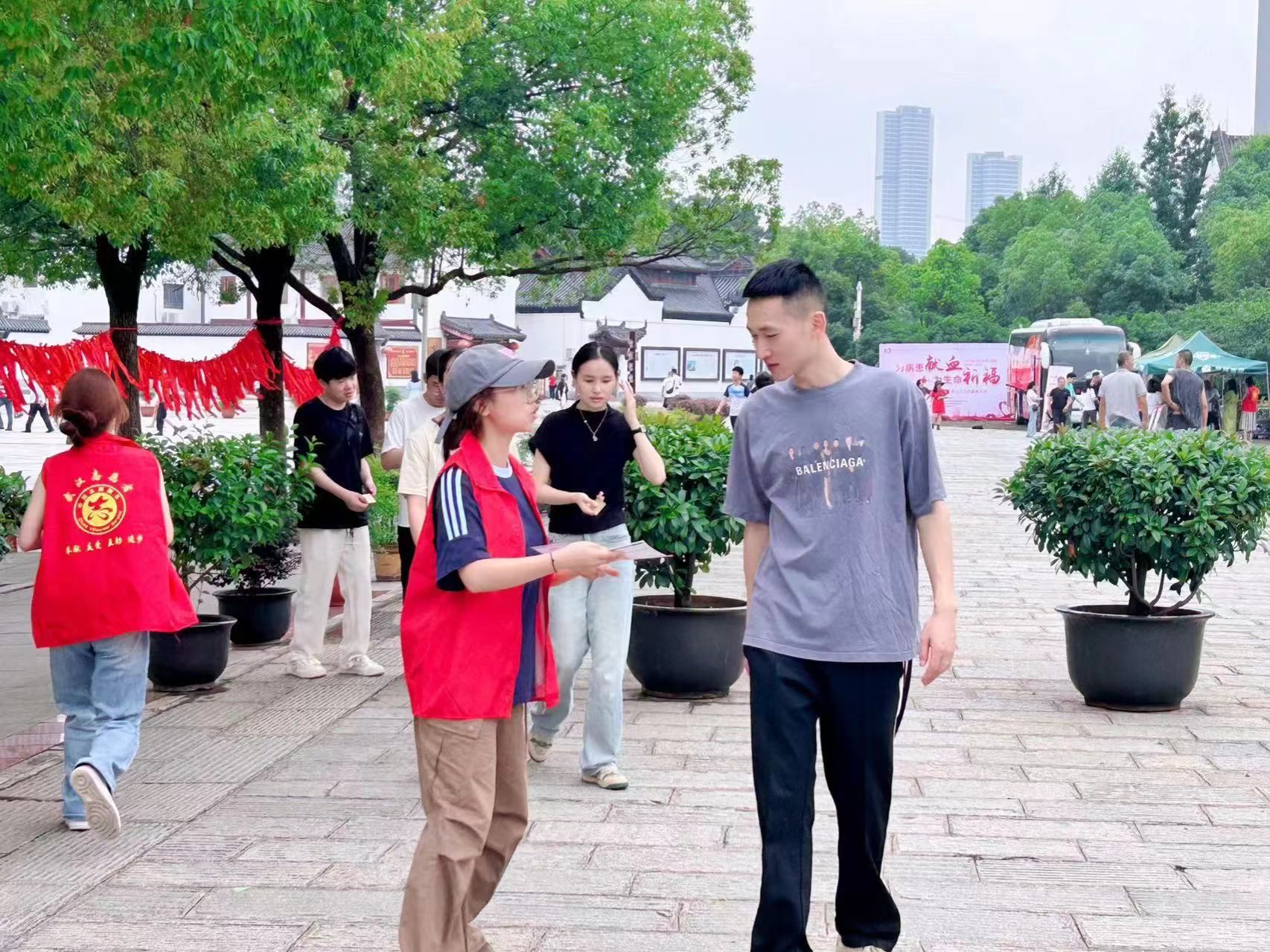 活动现场,志愿者们热情地向过往的游客介绍无偿献血的重要意义、献血的流程和注意事项。他们耐心地解答着人们的疑问,消除大家对献血的顾虑和误解。许多游客被志愿者们的真诚和热情所打动,纷纷驻足倾听,并表示愿意加入到献血的活动中来。