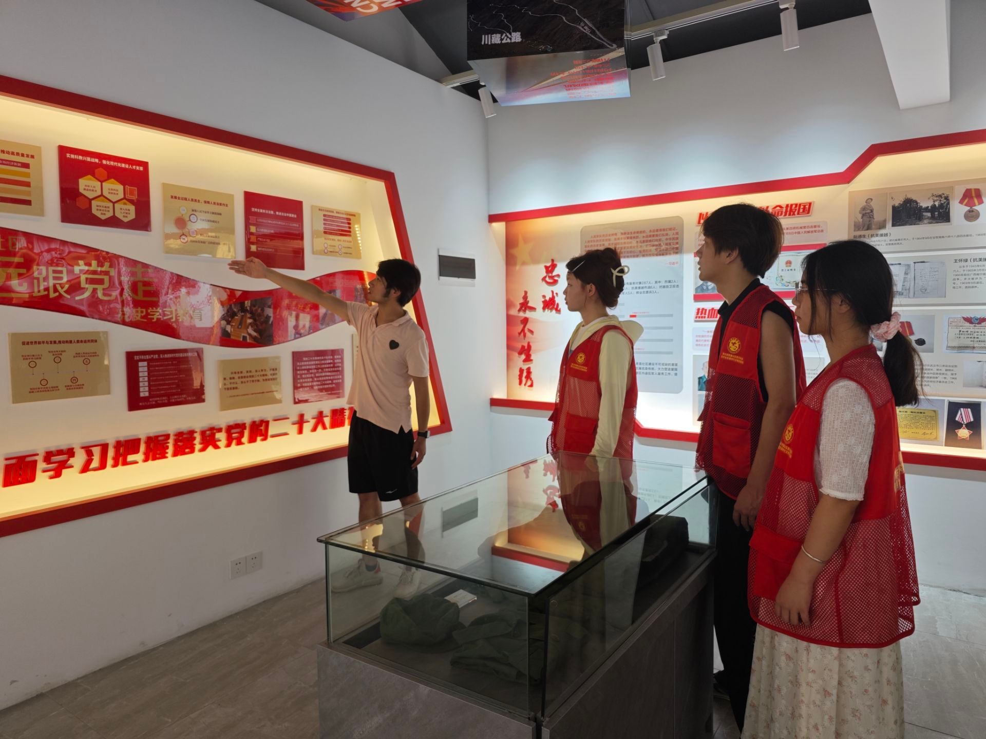 跟随工作人员的指引,实践队成员走进退役军人服务站二层展馆参观。场馆内,每位退伍军人的相片、功勋、奖章、简要介绍,整洁大气地挂在墙上,每段介绍仿佛都带领实践队成员回到那段光辉荣耀的历史。