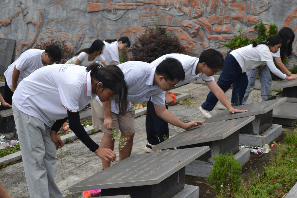 转过纪念碑,沿着山路向前,志愿者们伫立在革命烈士们的墓前,在支教团负责人田丰的带领下清理墓旁的杂草落叶,以保持墓地的整洁干净,怀着崇高的敬意轻轻拭去墓碑上的灰尘并向革命先烈敬献花束,每一个细节都透露出对烈士们的尊重与怀念,以表达对他们的深切怀念与深切哀悼。一束束花代表着志愿者们对先烈们的敬仰和感激,感谢他们创造了今天的美好生活。