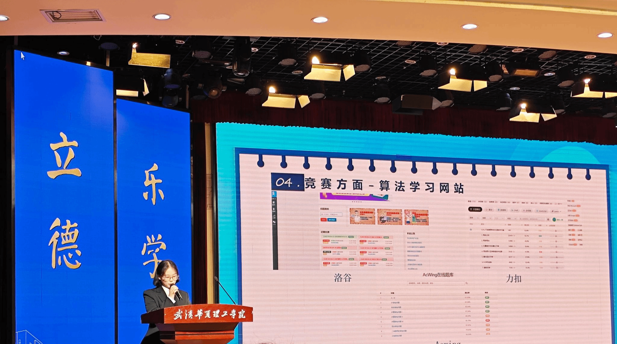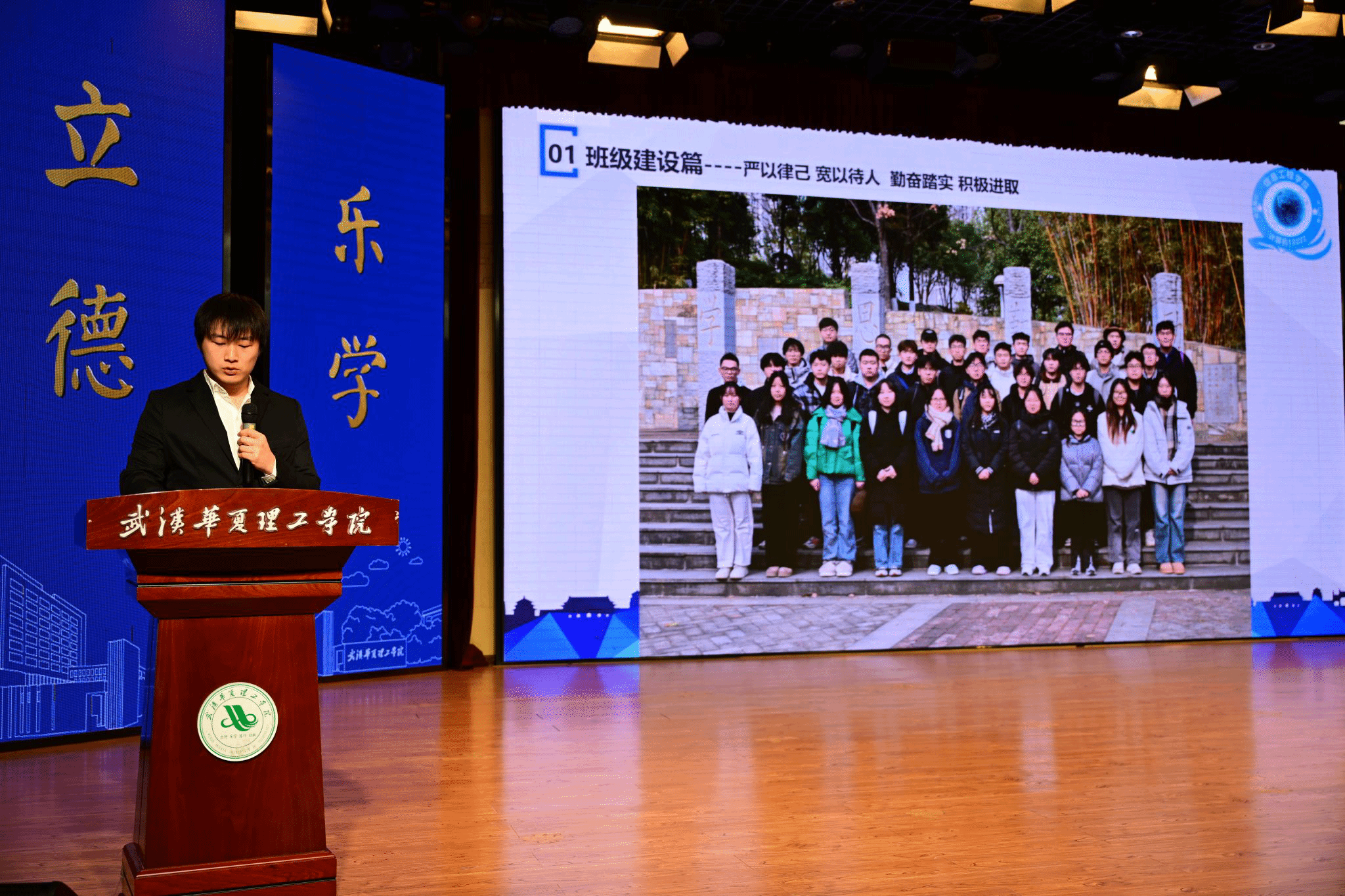 在“标兵班集体”获奖代表交流发言环节,胡锐作为标兵班集体的代表分享了班级建设经验和学习心得,展现了富有凝聚力和荣誉感的班集体在学科竞赛、文体活动和专业证书考取中取得的一系列成果。而“沐光实践队”的优秀代表李嘉惠则通过实践过程中图文展示,展现了队员在乡村支教、文旅推广和生态保护方面做出的努力,通过讲述一则则在实践过程中的感人故事,传递了实践育人的理念。