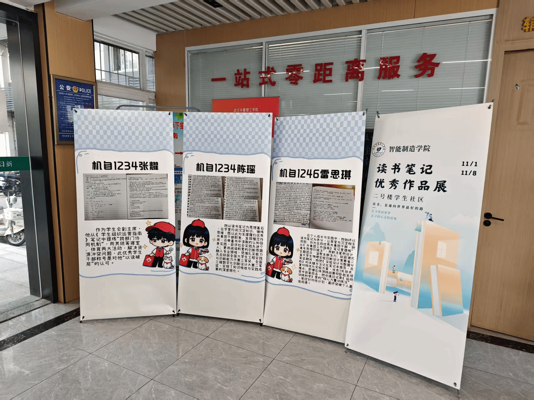 为激发学生阅读兴趣,培养良好读书习惯,11月1日至8日,智能制造学院在二号楼学生社区举办读书笔记优秀作品展。