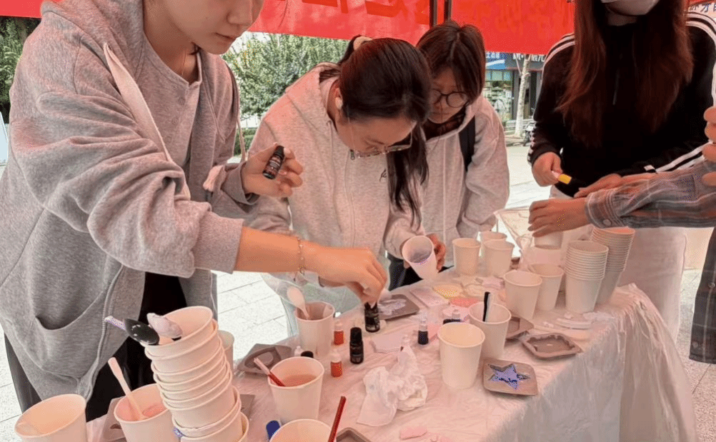 香薰拓片活动则将传统香道与现代生活美学巧妙结合。在刘雪颖老师的指导下,同学们亲手制作片片凝聚自然香气与个人创意的香薰拓片,体会到如何将无形的香气固化为可观赏、可佩戴的艺术品,展现了非遗技艺与现代生活的完美融合。