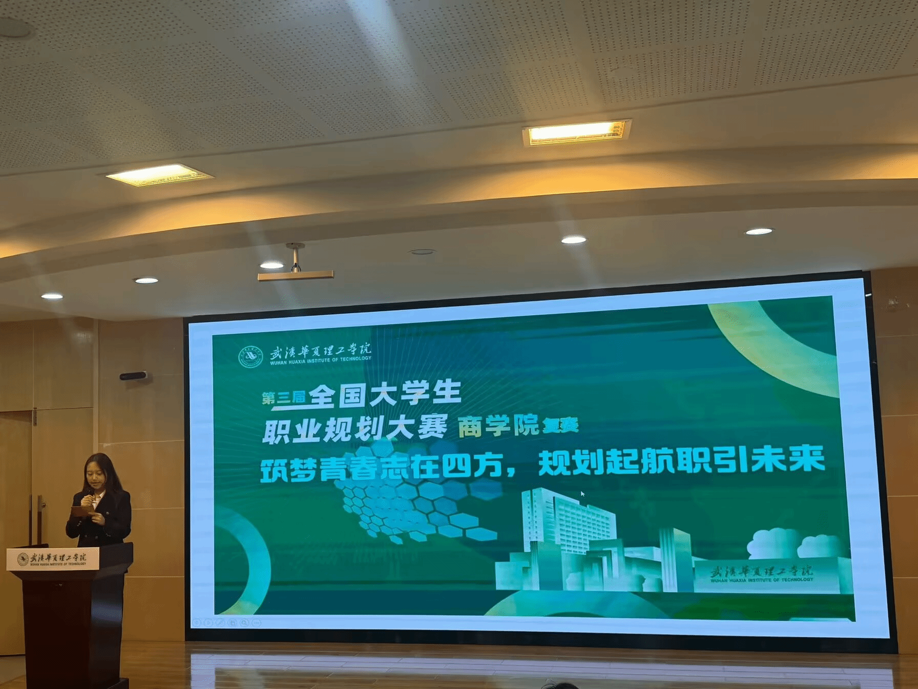 为响应第三届全国大学生职业规划大赛号召,落实学校“以学生发展为中心”的人才培养理念,助力学生明确职业方向、提升就业核心竞争力,武汉华夏理工学院商学院第三届全国大学生职业规划大赛复赛于11月17日18:30在光谷校区教学楼2-201顺利举办。