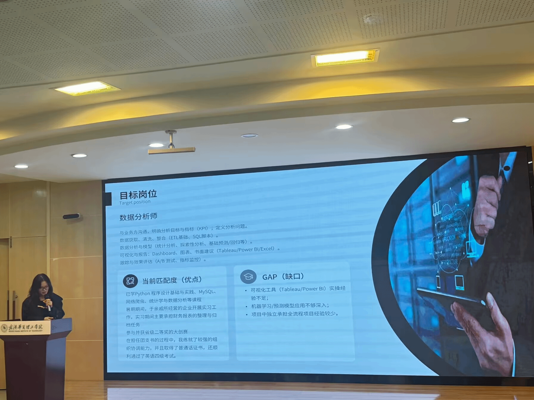 复赛当天,成长赛道与就业赛道的选手们依次登场,在各自环节中展现出扎实的职业规划功底与良好的临场应变能力。成长赛道的选手们以“生涯发展报告”为核心,围绕商科专业特点,清晰阐述了个人职业规划逻辑与成长成果。在5分钟主题陈述环节,选手们结合自身社会实践经历,分析职业目标的可行性,展现出对商科职业领域的深入思考。随后的2分钟评委提问环节,评委们围绕职业目标合理性、行动方案可行性等关键问题展开提问,选手们从容应答,进一步凸显了对职业规划的系统性认知。