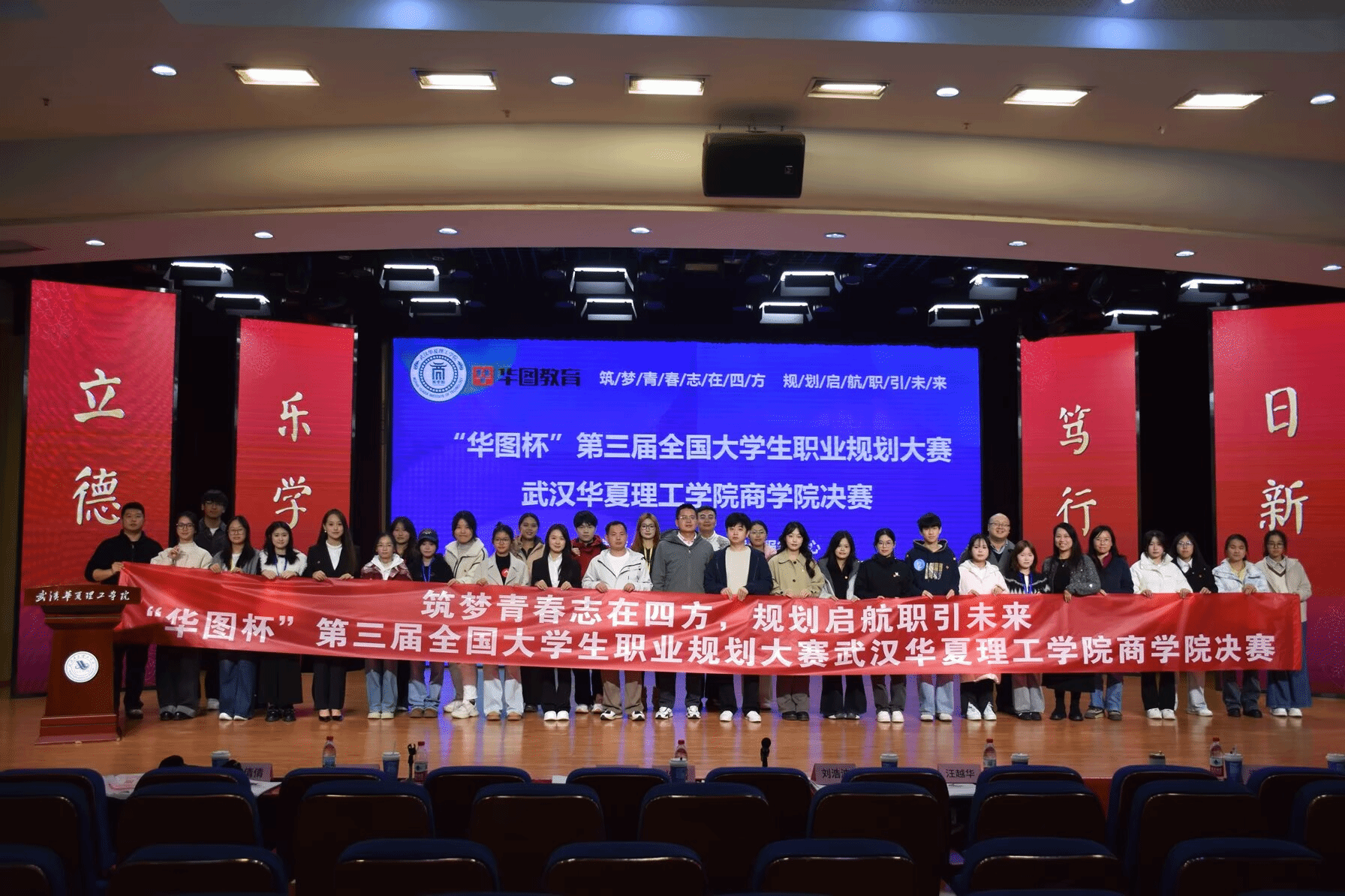 为响应校园职业素养培育号召,践行“以学生成长为核心”的育人理念,助力商学院学子理清职业发展脉络、夯实职场核心能力储备、搭建校园与职场的衔接桥梁。武汉华夏理工学院商学院第三届全国大学生职业规划大赛于11月20日中午12:15在光谷校区学术报告厅顺利开展。出席本次比赛的嘉宾评委有华图教育科技有限公司结构化面试教研负责人陈元泽、猿辅导湖北公司Hrbp经理汪越华、学生就业创业指导服务中心副主任刘继平、商学院学工办主任刘浩波、商学院党总支组织员杨洋、财会系副主任徐玄玄、国贸与金融系副主任谭瑛、商学院团总支副书记张倩倩。