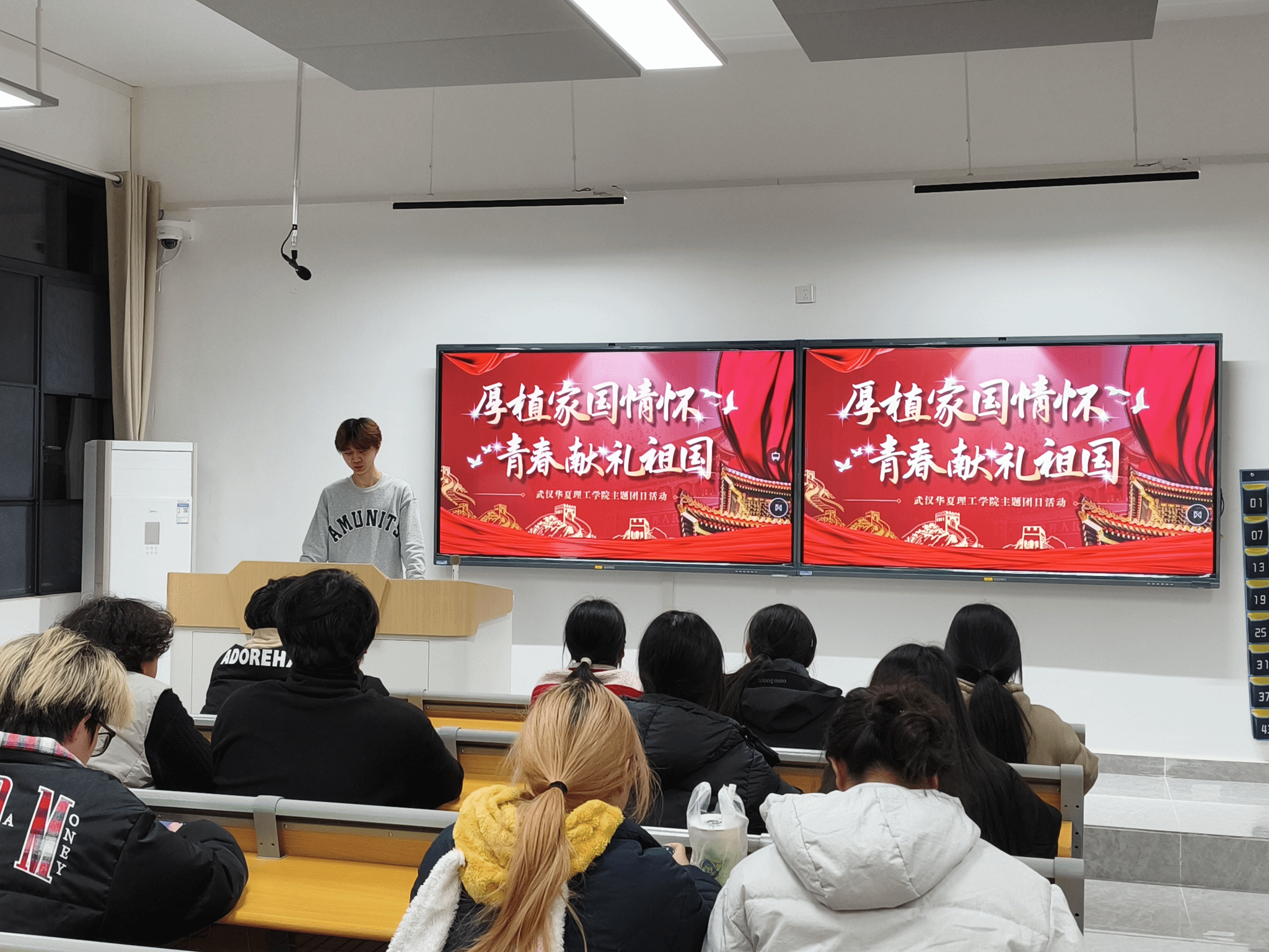 11月20日,为迎接新中国成立七十六周年,激发青年团员的爱国热情与使命担当,土木建筑工程学院工程造价1252班在C304教室组织开展了“厚植家国情怀,青春献礼祖国”主题团日活动。活动由团支书王炳杰主持,主要通过专题讲授、影像学习等多种形式,引导广大青年坚定理想信念,将个人梦想融入国家发展,以实际行动践行青春誓言。