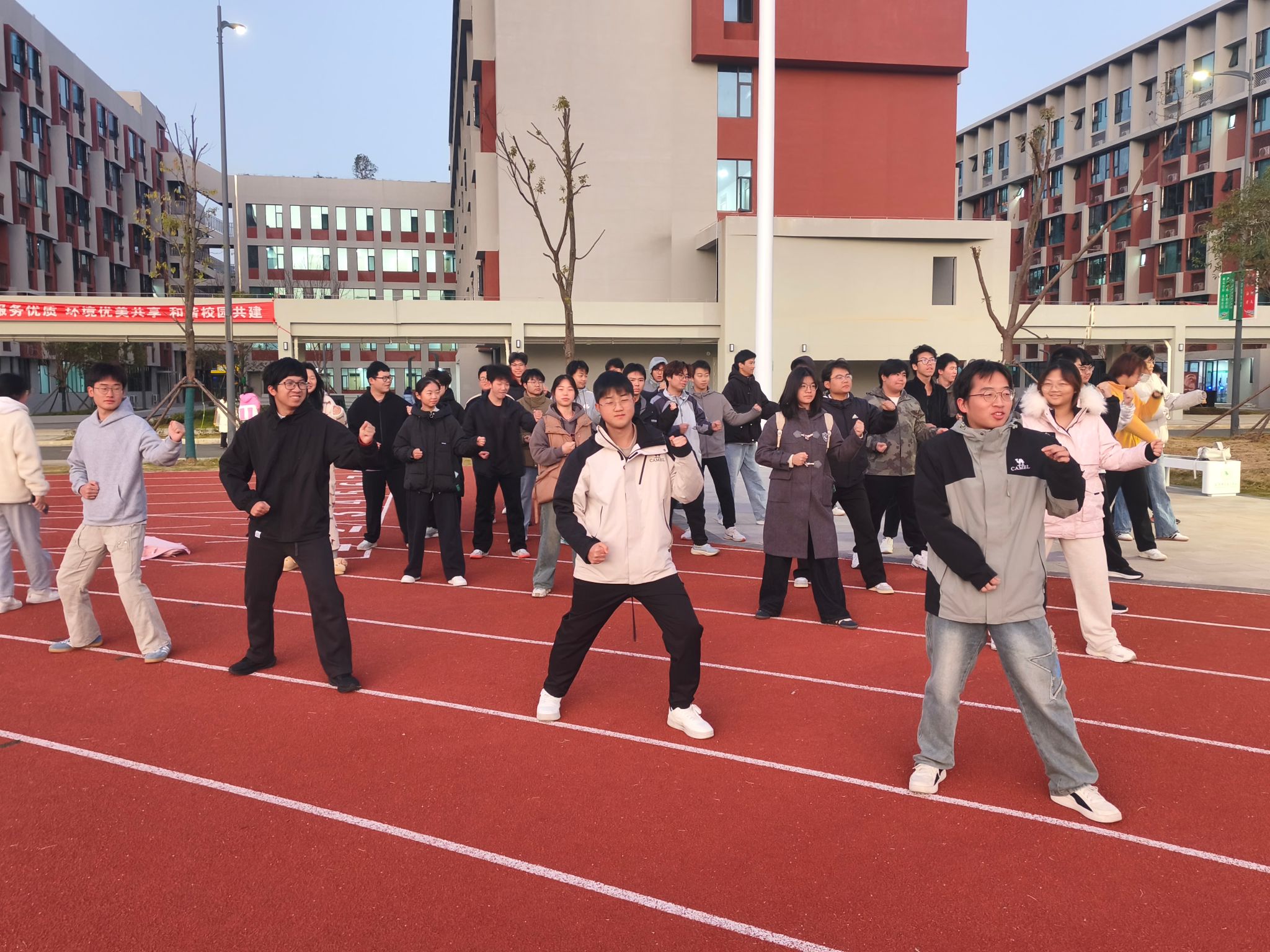 训练中,同学们精神抖擞地列队站好,虽未身着统一服装,但个个身姿挺拔、态度专注。在体育委员的带领下,大家一招一式认真揣摩、反复练习,出拳刚劲有力、踢腿利落稳健,动作逐渐趋于整齐划一。操场上,嘹亮的口号声与整齐的脚步声相互呼应,尽显机电学子朝气蓬勃、奋发向上的精神面貌。