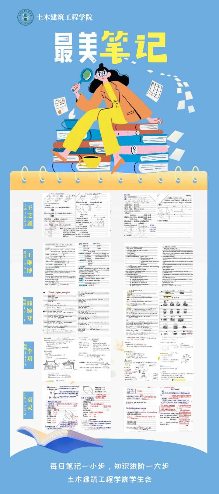 为营造优良学风,激发学习热情,近日,土木建筑工程学院“最美笔记”评选活动圆满结束。活动面向全院学生,征集涵盖混凝土结构、工程测量、建筑制图等专业课程的笔记作品。