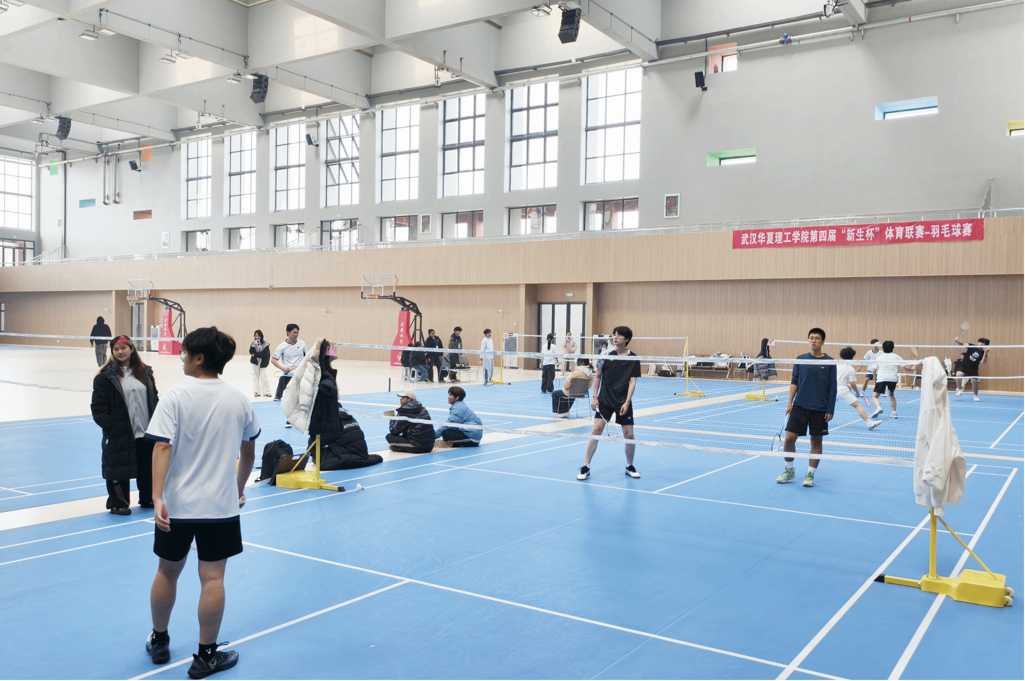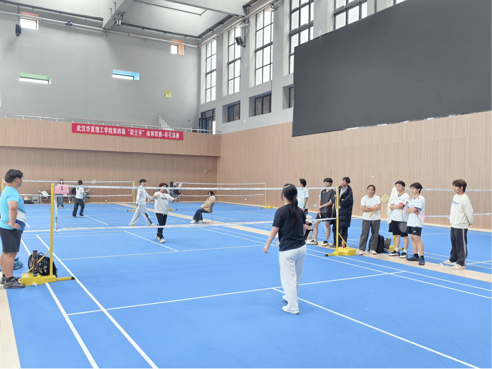 12月11日中午,我院参加比赛的学生在体育馆进行第四届“新生杯”羽毛球联赛的半决赛,此次比赛在一次次激情扣杀与默契配合中落下帷幕。这场以球会友的青春盛会,不仅展现了我校学子精湛的球技与顽强的斗志,更用汗水与欢笑,书写了“友谊第一,比赛第二”的动人篇章。