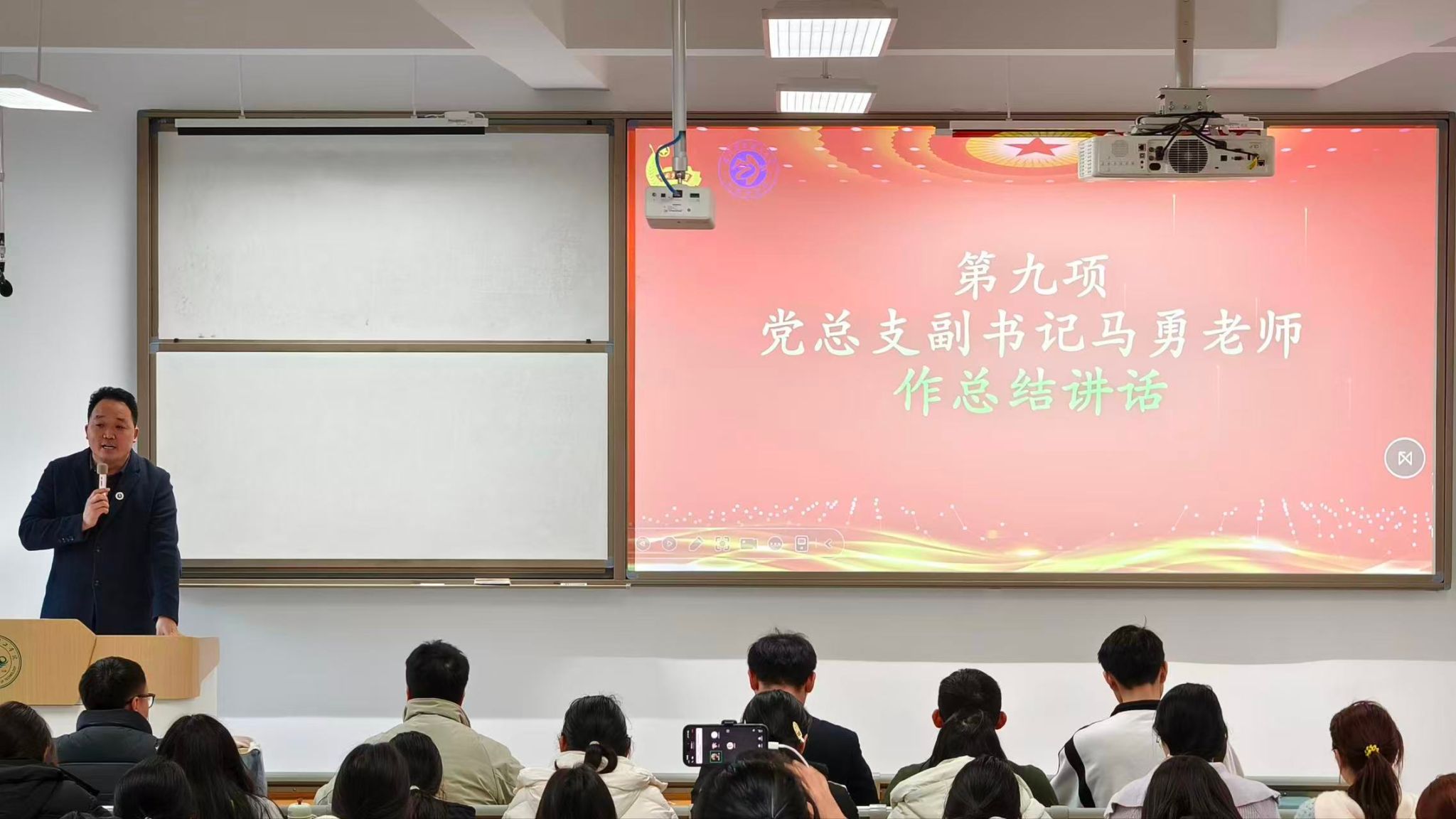 最后,外国语学院党总支副书记马勇作总结讲话。他回顾了我院在学风建设与青年培养中取得的阶段性成果,并对外院学子提出殷切期望:希望同学们以此次培训与表彰为新的起点,筑牢信仰根基,锤炼过硬本领,在学习和生活中走在前、做表率,共同营造“比学赶超、奋发向上”的学院氛围,为外国语学院的高质量发展贡献青春力量。