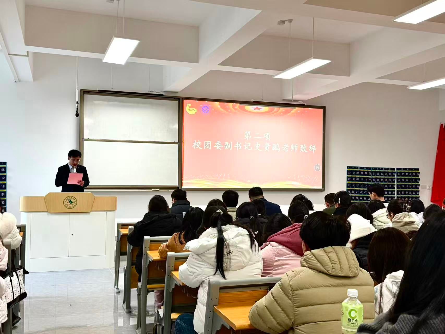 其后,基层团校团支书、先进班集体代表丰奕鑫同学在发言中分享了学生干部在推动班级建设、营造优良学风中的实践与感悟,表达了将继续履职尽责、带动同学共同进步的决心。