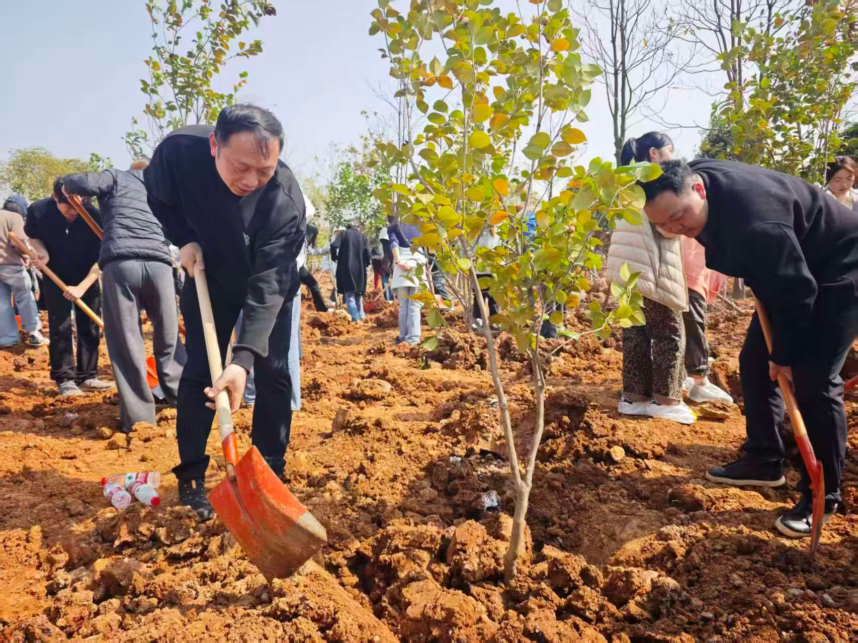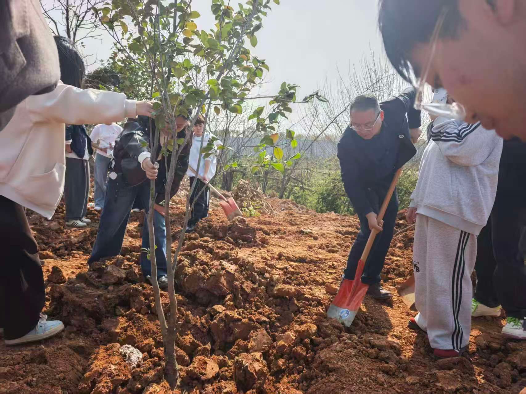 活动现场,师生们全身心投入,紧密协作。大家或挥锹铲土,或扶苗填坑,或提水浇灌,各环节衔接有序,忙而不乱。尽管午后阳光较为灼热,全体师生依然热情高涨,凭借坚韧的毅力完成栽植任务。