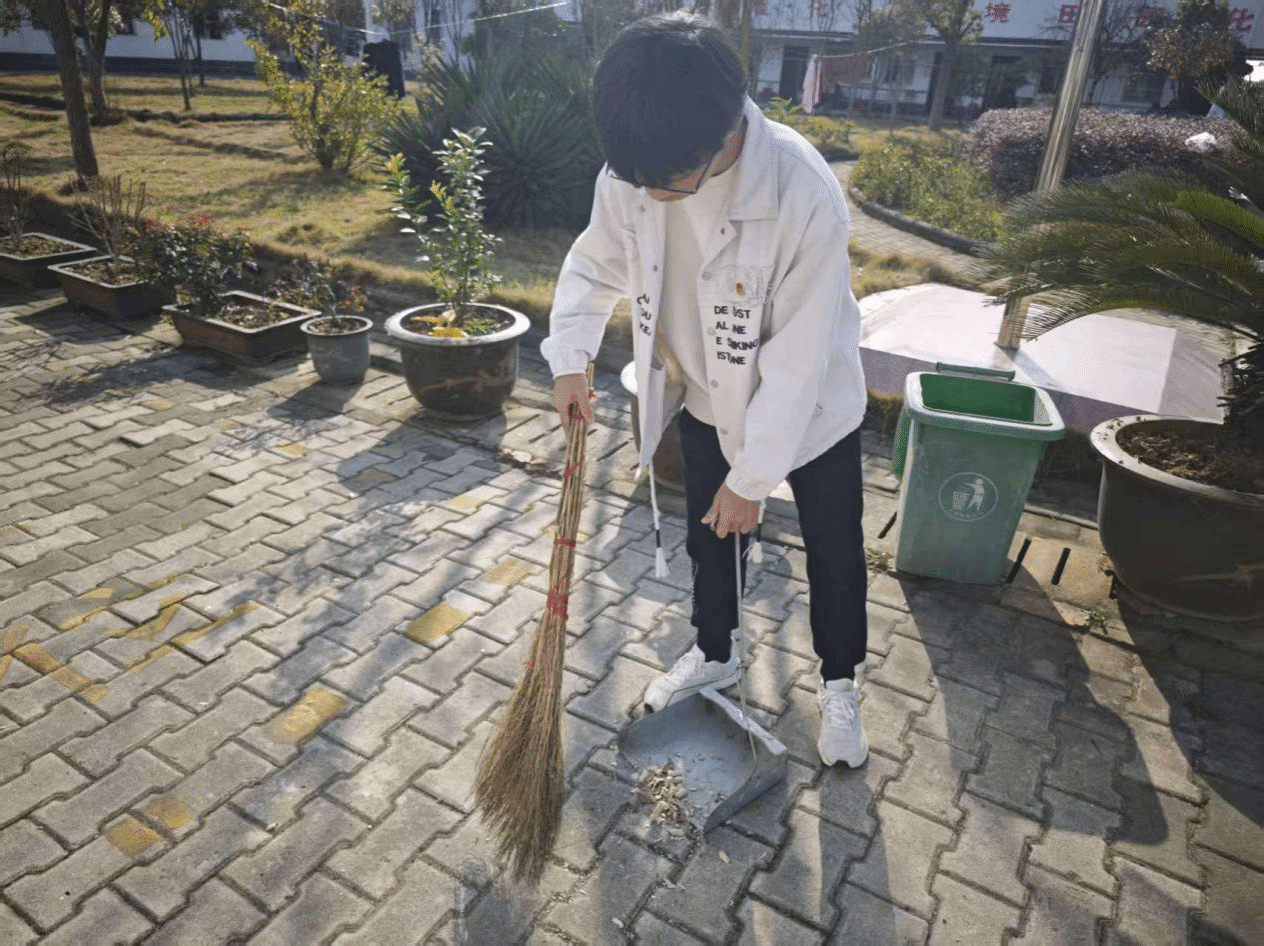 在陪伴老人娱乐的同时,工商1253班的同学们也不忘用实际行动为老人们营造更加舒适整洁的生活环境。大家主动拿起扫帚、抹布、簸箕等清洁工具,分工协作、认真细致地开展卫生清扫活动。有的清扫地面垃圾,有的擦拭门窗桌椅,有的整理活动场地杂物,不放过任何一个卫生死角。同学们不怕脏、不怕累,以饱满的热情投入到劳动中,用双手为老人们打造干净、整洁、舒心的休憩环境,以实实在在的行动诠释雷锋精神,让奉献之美在劳动中闪光。