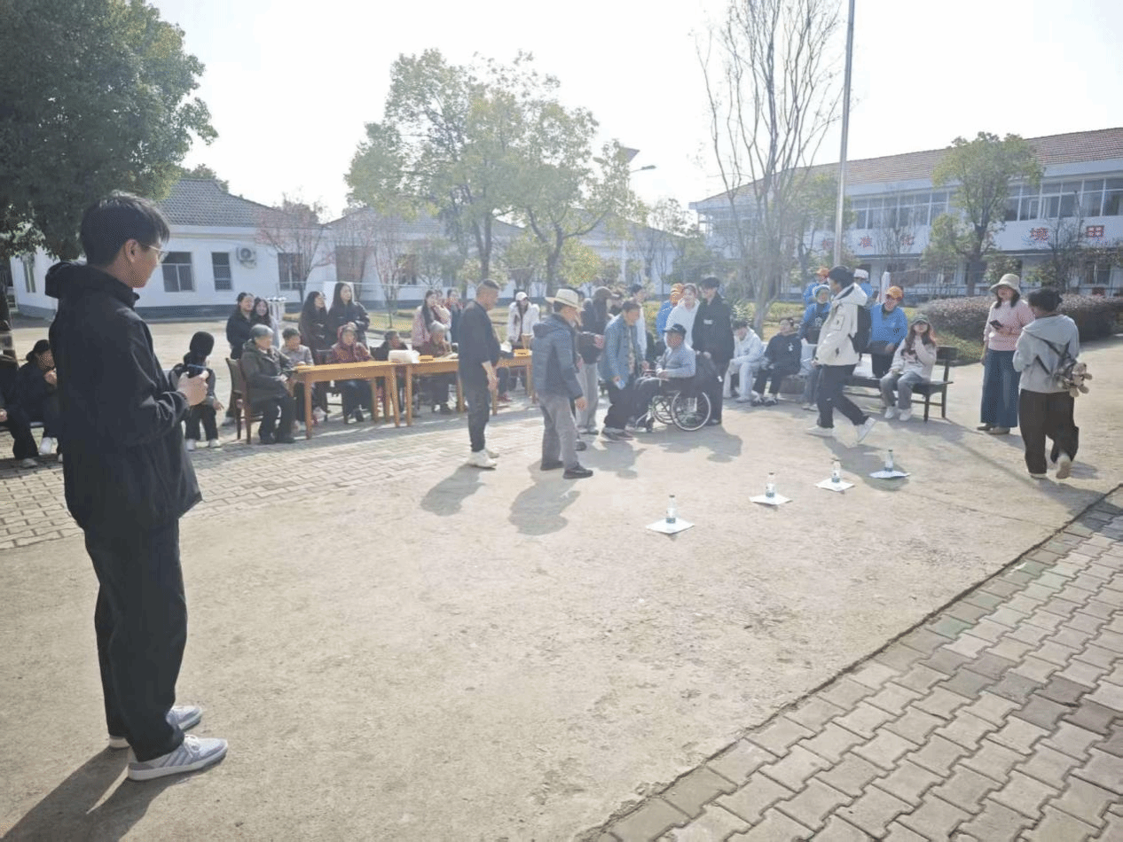 为了让老人们在活动中收获更多快乐,同学们精心准备了一系列怀旧又有趣的互动游戏。其中,经典的丢沙包环节一开启,便瞬间点燃了全场的热情。同学们与老人们自由组队、默契配合,投、躲、接、闪,动作轻快又欢乐。熟悉的游戏唤醒了老人们心底的童年记忆,他们脸上洋溢着纯真灿烂的笑容,每一次成功躲避、每一次精准接住,都引来现场阵阵欢呼与掌声。同学们用最热烈的掌声,为每一位积极参与的老人喝彩,欢声笑语此起彼伏,让整个活动现场充满了生机与活力。
