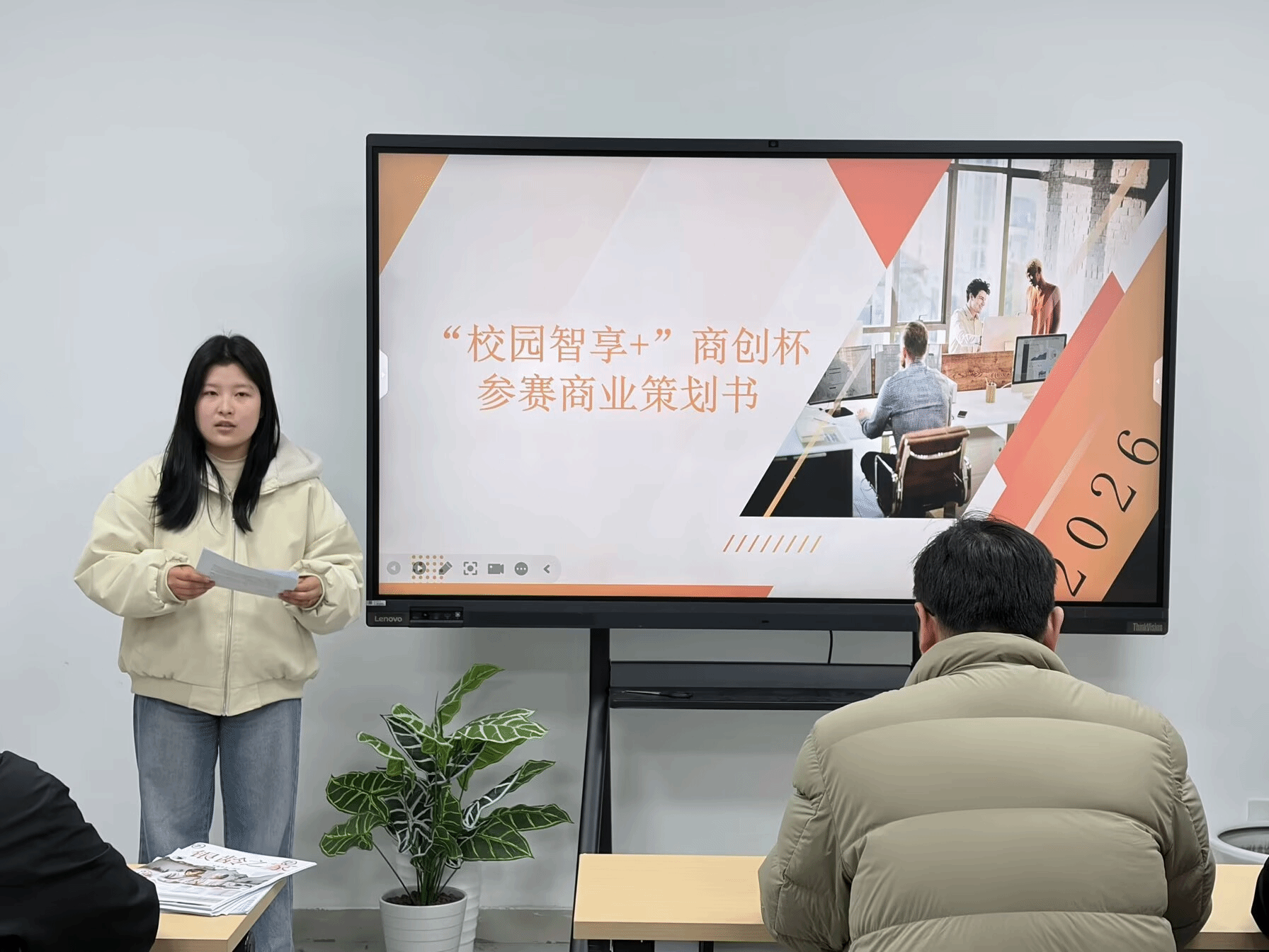 比赛中,各团队展示了多种创新项目。“银龄之家——智慧养老小程序”致力于通过数字化手段提升养老服务效率;“银发守护官——AI赋能的主动式老年健康守护方案”利用人工智能技术保障老年人健康安全;“碳索校园”低碳生态平台倡导绿色生活方式,响应国家“双碳”战略;“校园智享+”智能共享服务平台优化校园资源循环利用;“悦读星球”沉浸式阅读社交平台旨在打造新型阅读体验;“职引未来”大学生职业能力成长导航系统助力学生职业规划与发展等等项目。三位老师从项目逻辑、技术实现、商业模式、团队协作及社会价值等多个维度对参赛作品进行了专业点评,并就项目优化与后续孵化提出了建设性意见。最后,商学院团总支书记张文昌上台做总结发言。他充分肯定了本届赛事的整体水平和育人成效,阐述了“商创杯”不仅是一场比赛,更是学生将理论知识转化为实践成果的重要桥梁。希望同学们继续保持创新热情,在实干中成长,在奋斗中成才。