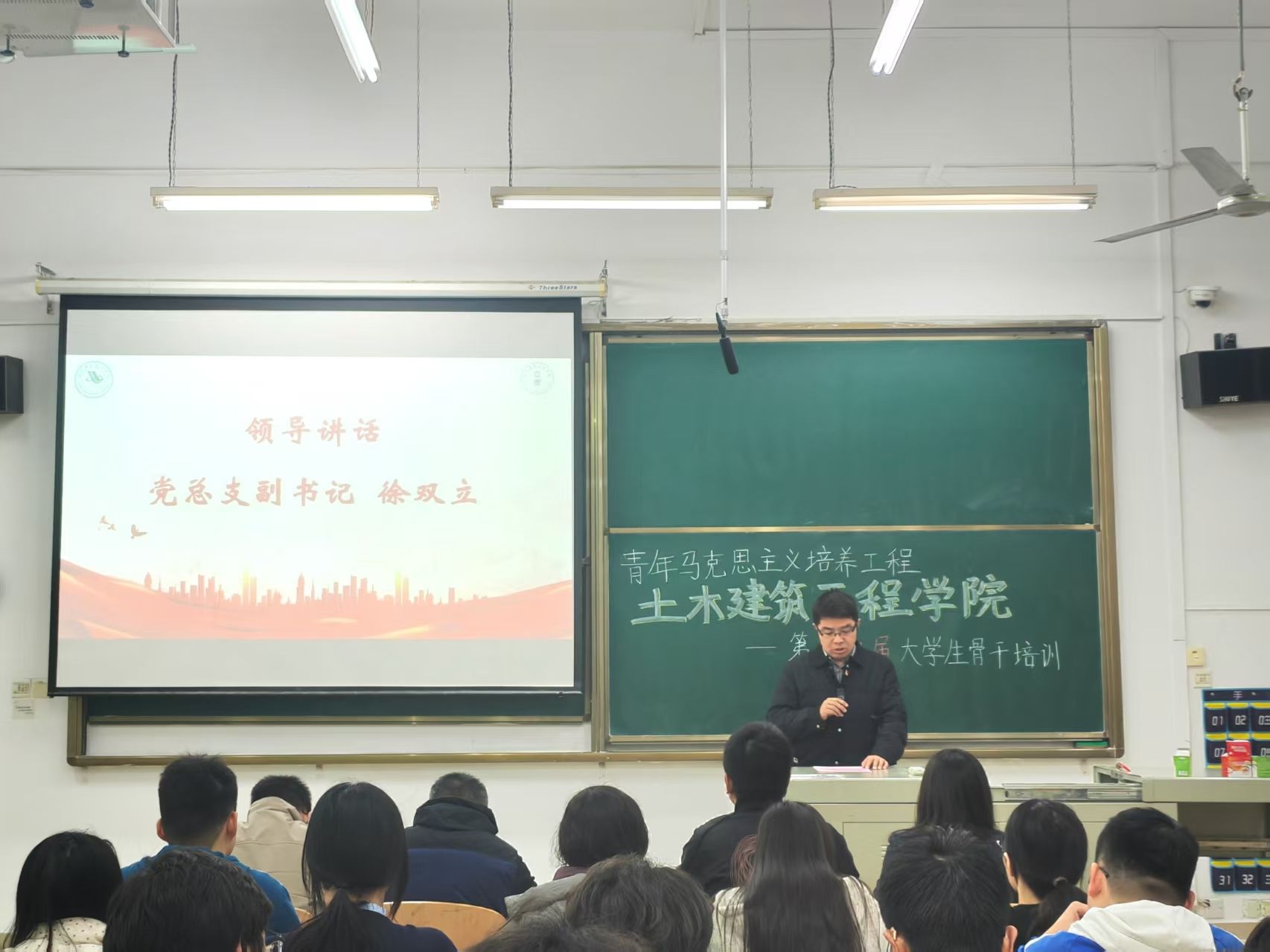 最后,党总支副书记徐双立作总结讲话。他结合当前国家发展大局与青年成长实际,对学员们提出三点期望:一是筑牢信仰之基,深入学习党的创新理论,把专业所长对接国家发展需要,立志做有担当有情怀的青年人;二是强化责任担当,在服务师生、参与学院建设中发挥模范带头作用;三是注重知行合一,将理论学习转化为推动实际工作的强大动力。他强调,青年骨干要立足新起点、展现新作为,为学院高质量发展贡献青春力量。