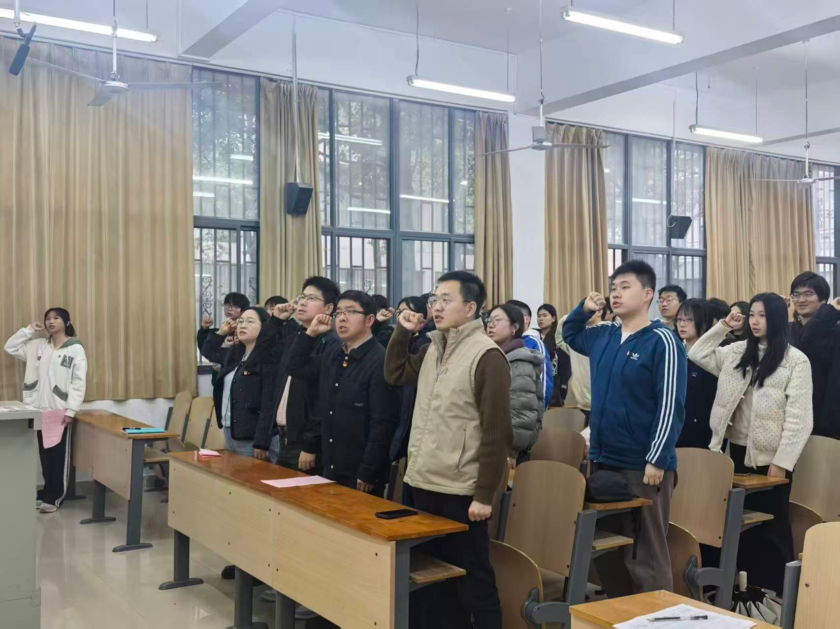 仪式在庄重而热烈的氛围中拉开帷幕。第一项议程,辅导员黄呈老师宣读开班具体规则,就纪律要求、学习任务及考核标准作了详细说明,希望全体学员严守规章、学有所获。第二项议程,团总支书记昌仪琳带领全体学员重温入团誓词,面对鲜红团旗,团学干部高举右拳庄严宣誓,铿锵誓言进一步强化了身份认同与责任意识。