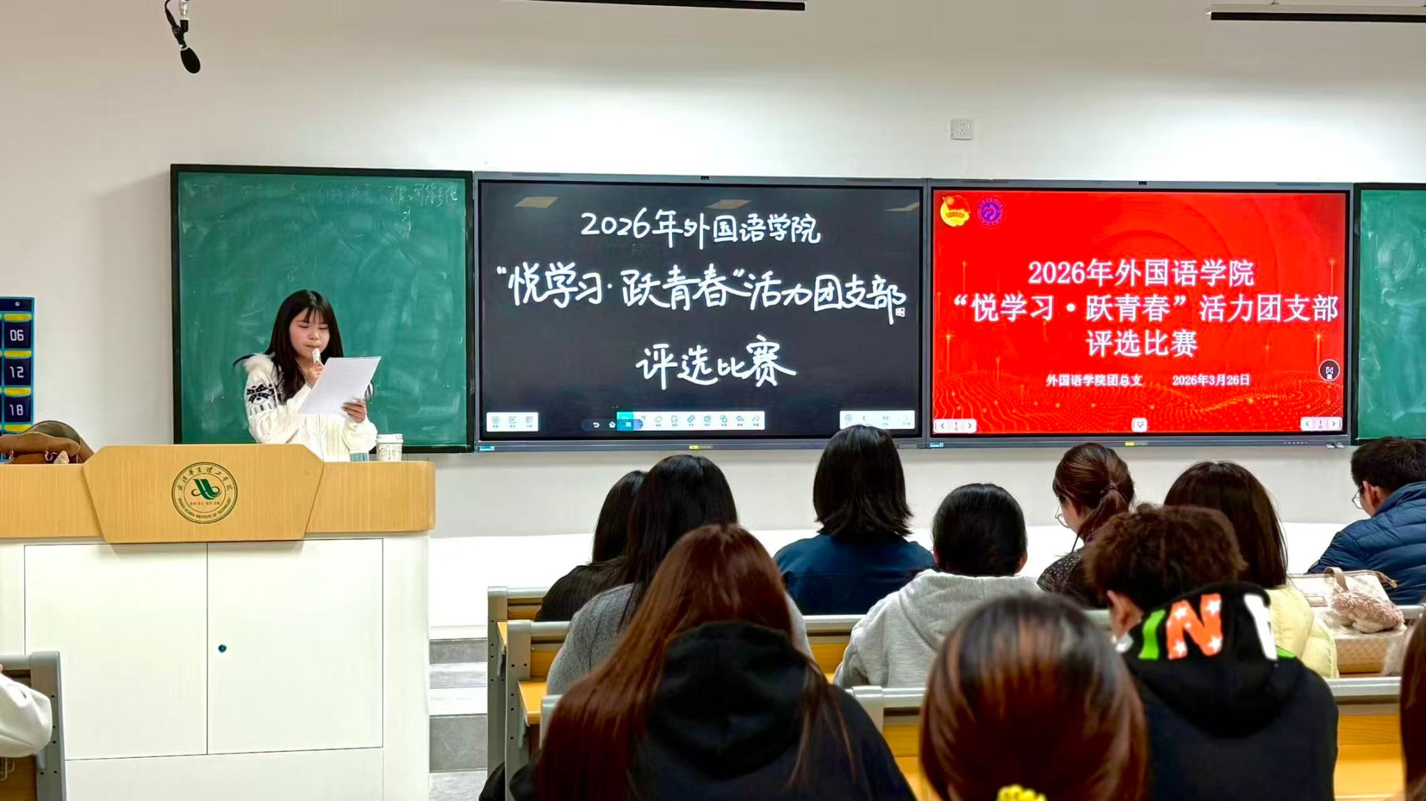 为激发基层团组织活力,提升团员综合素质,展现各团支部风采,外国语学院于3月26日18时在梧桐湖校区A209成功举办“悦学习·跃青春”活力团支部评选比赛。本次活动由外国语学院团总支主办,各级25级团总支组织部承办。