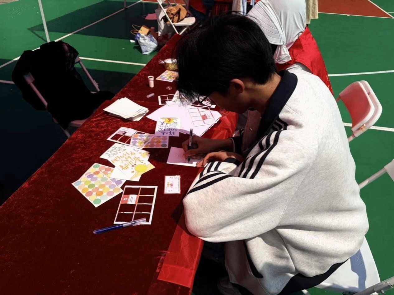 活动启动后,得到了很多同学的广泛参与。同学们有序领好空白贺卡,认真琢磨祝福语,用心写下自己最真诚的祝福与暖心话语。大家结合自身外语专业优势,精心挑选寓意美好、充满鼓励的英文祝福语贴纸,细心粘贴在贺卡之上,让中文的温情与英文的浪漫相互交融,赋予每一张贺卡独特的意义与温度。