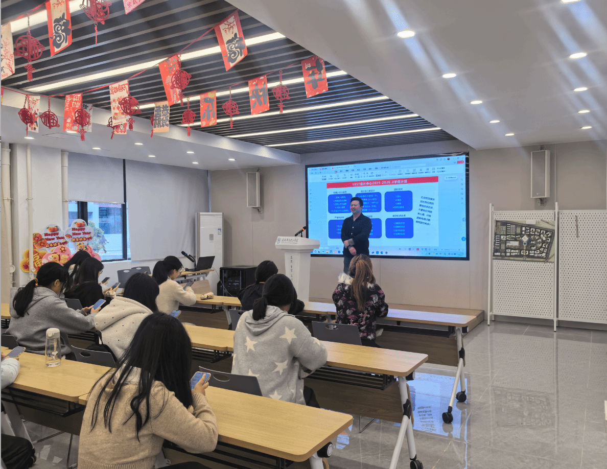 宣讲会伊始,1957工作室负责人严黎老师详细介绍了工作室的发展历程、核心定位及AI融合专业发展详细情况。作为学院重点打造的产教融合平台,1957工作室坚持以项目驱动教学,鼓励学生在真实商业环境中锻炼专业能力。随后,来思文化教育工作室负责人吴芸老师围绕“文化教育+新媒体运营”的特色方向,分享了工作室在校企合作、课程开发及学生实践方面的探索与经验。