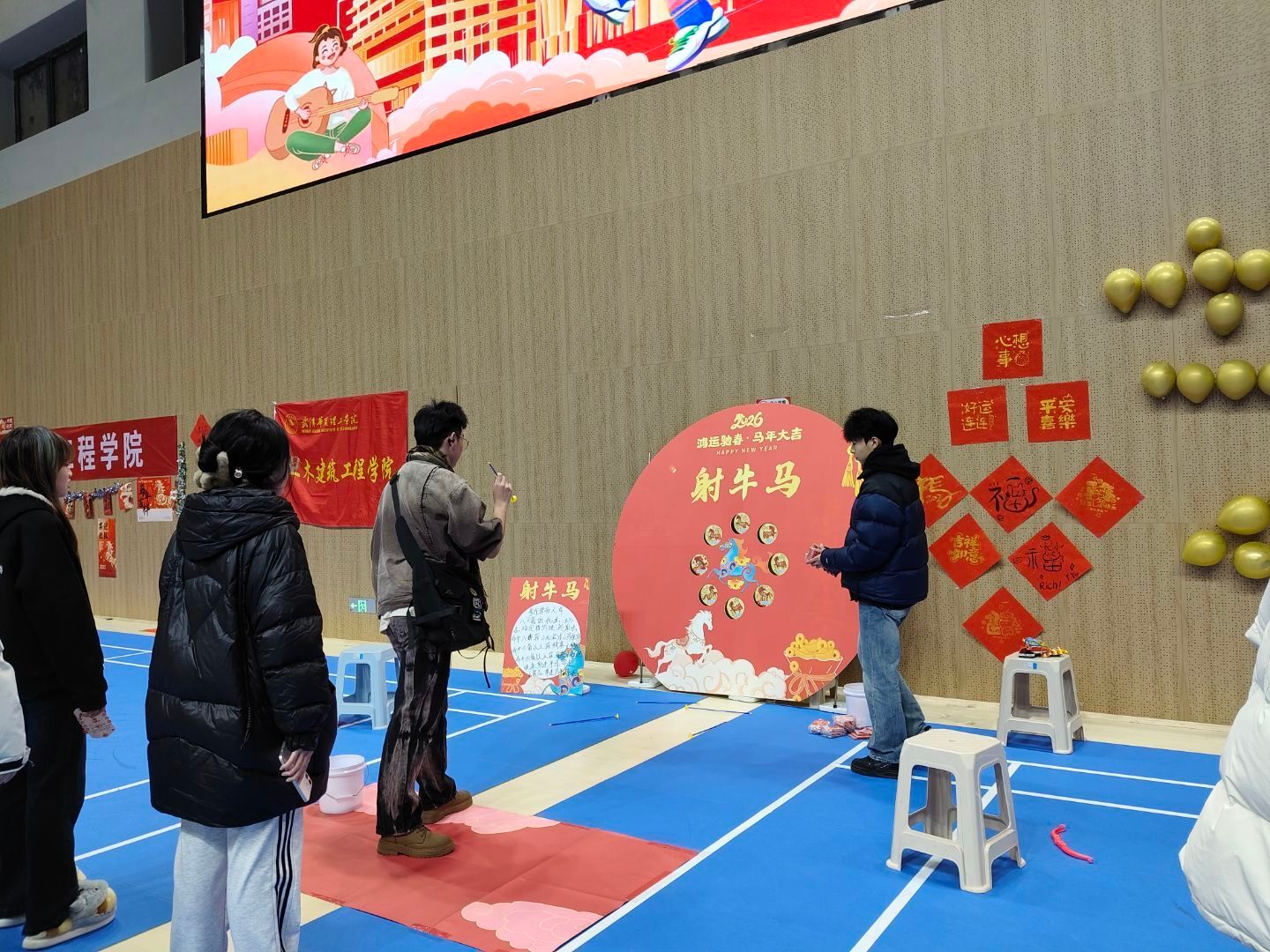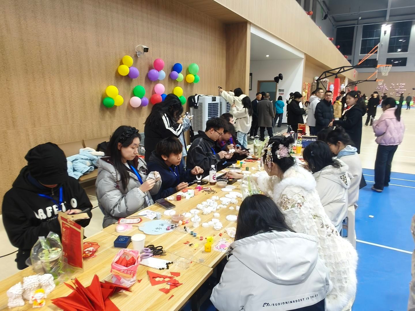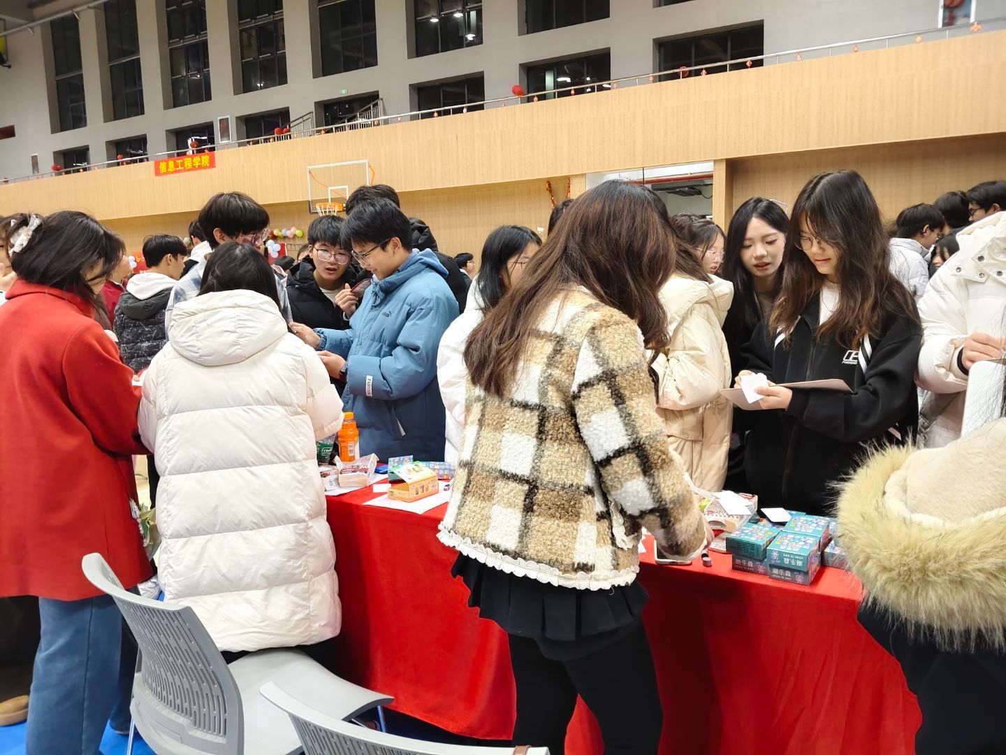 18:40起,游园互动环节正式开启,体育馆与大学生活动中心成为欢乐的主战场。各学院及社团结合自身特色,设计了趣味游戏、手工体验、知识问答等多样活动。师生们手持集章卡穿梭于各个摊位,参与游戏、收集印章,在互动中增进情谊,现场欢笑声、喝彩声此起彼伏。