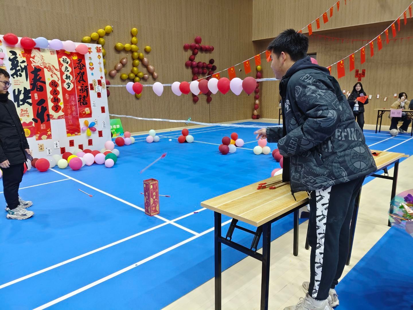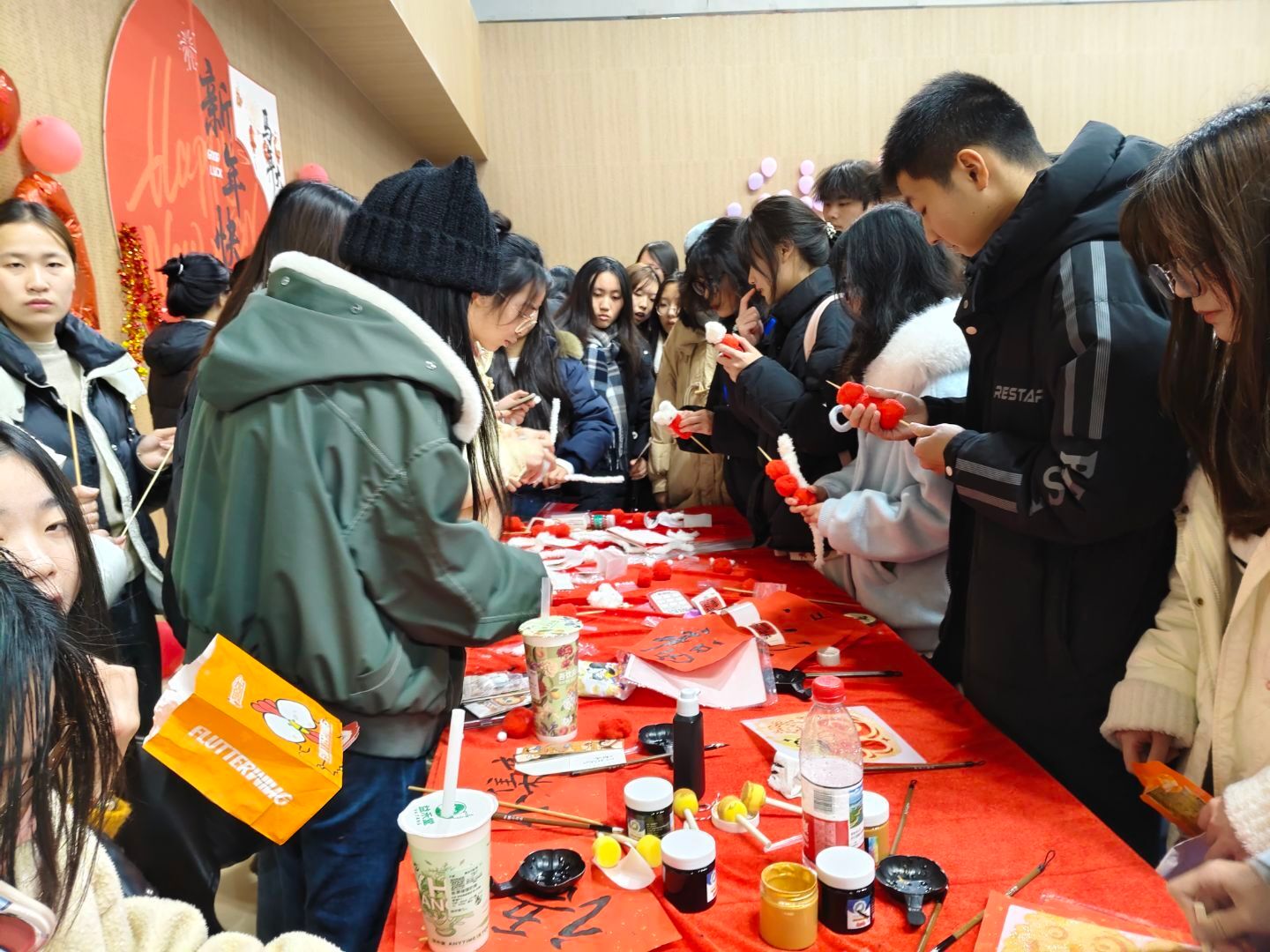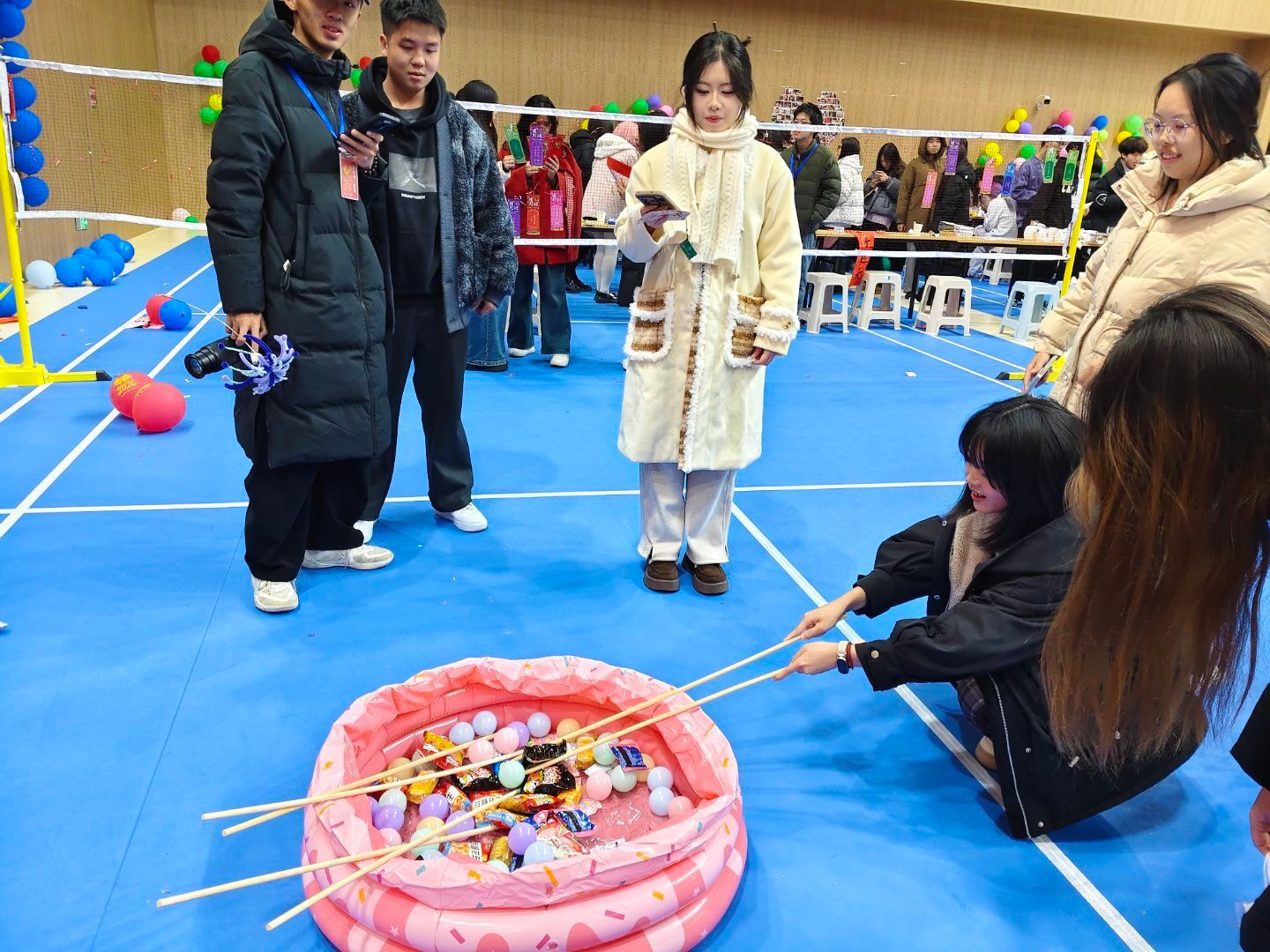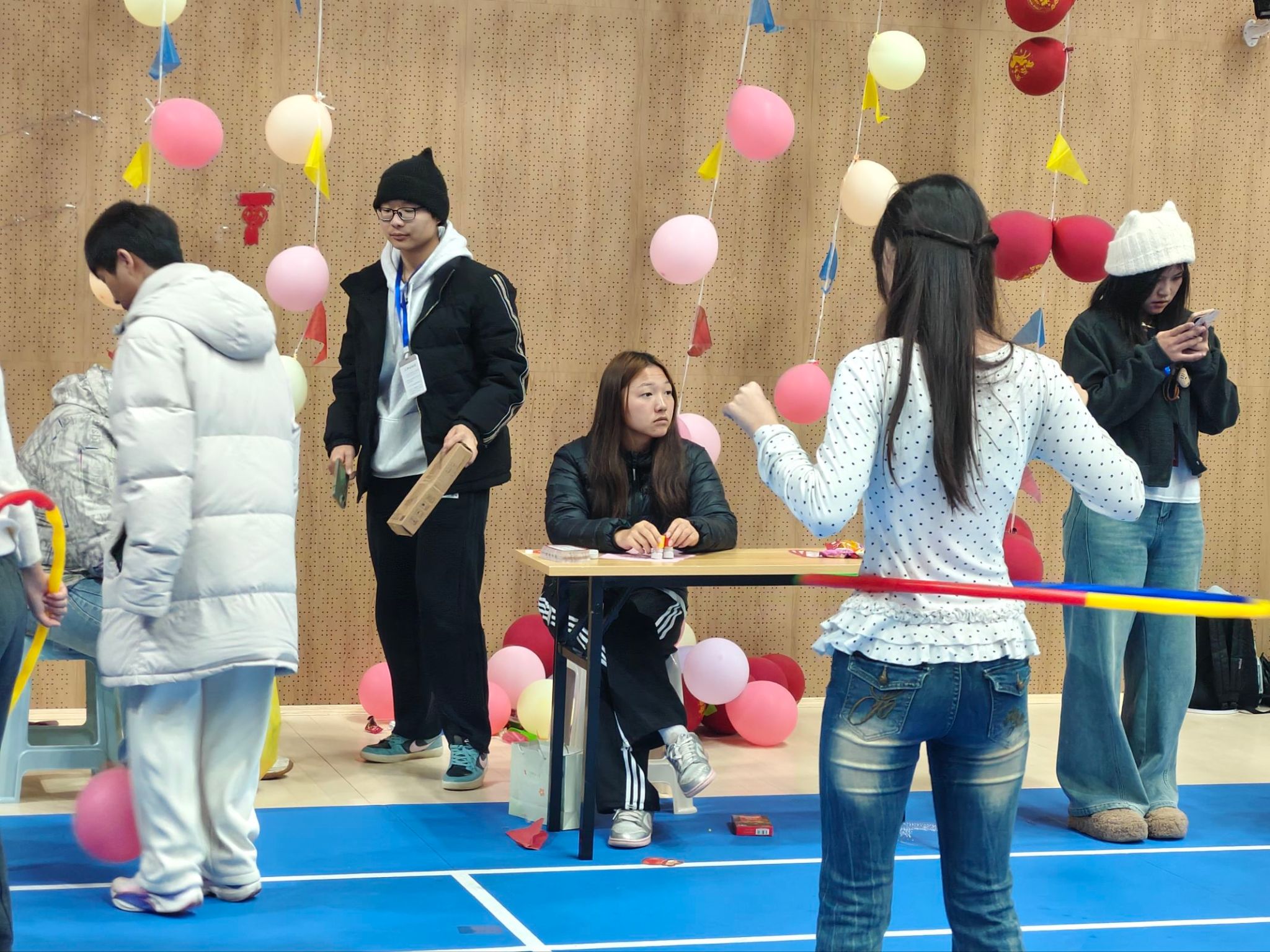 18:40起,游园互动环节正式开启,体育馆与大学生活动中心成为欢乐的主战场。各学院及社团结合自身特色,设计了趣味游戏、手工体验、知识问答等多样活动。师生们手持集章卡穿梭于各个摊位,参与游戏、收集印章,在互动中增进情谊,现场欢笑声、喝彩声此起彼伏。