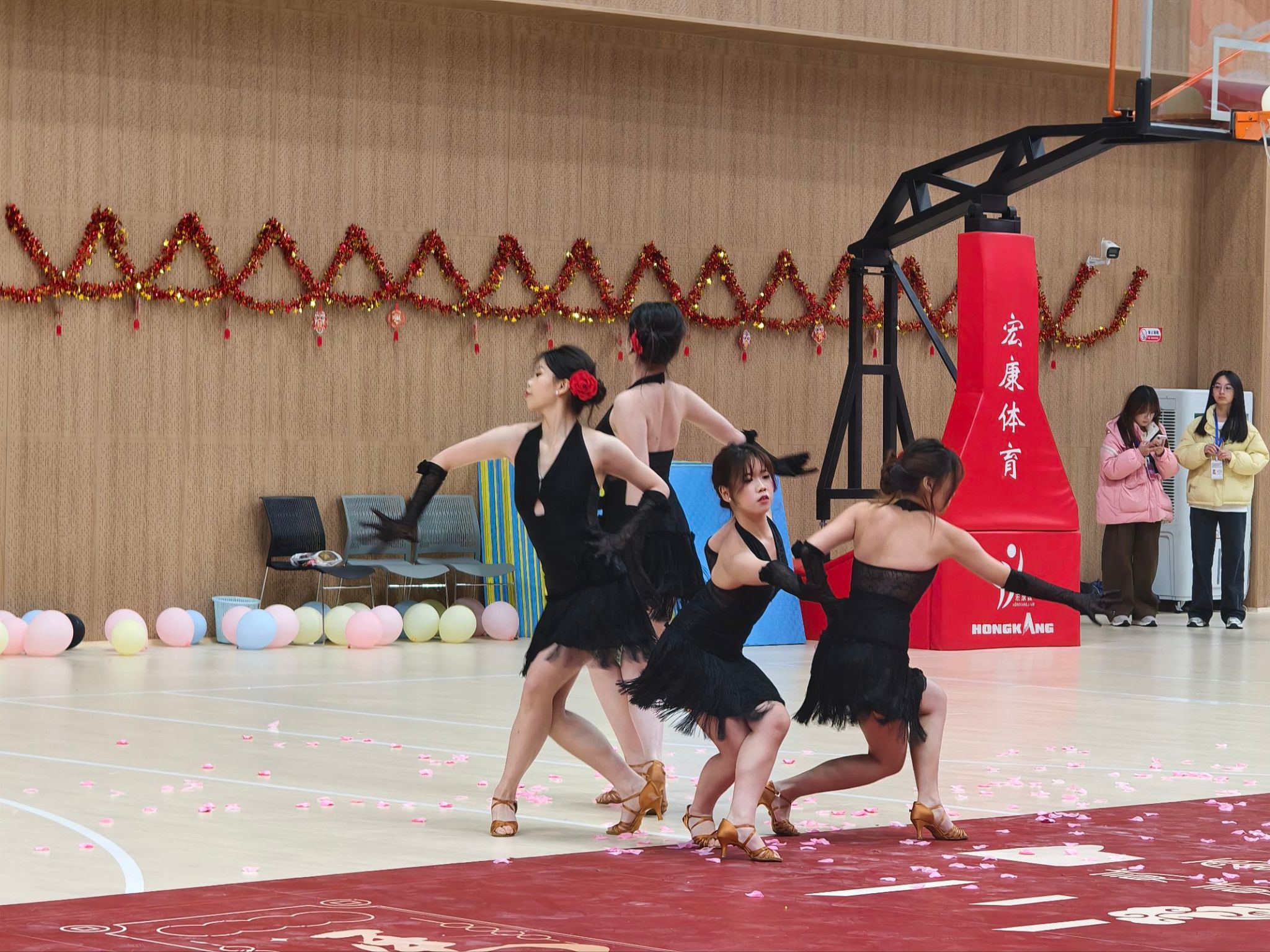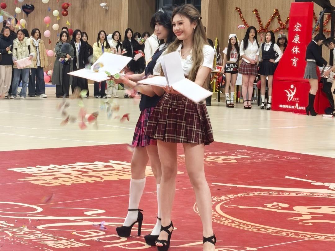 活动于当日18:00正式拉开帷幕,体育馆入口处人头攒动,师生们有序领取游园集章卡,兴致勃勃地参观各学院与社团精心布置的摊位,提前感受着节日的浓厚氛围。校体舞队的动感舞姿、啦啦操队的活力表演瞬间点燃现场气氛,整齐的动作与饱满的热情赢得台下阵阵掌声。