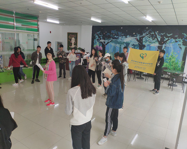 此次的会议开展方式告别以往的座谈方式,余莉老师组织主持人们站起身来围成一圈,“这种开展活动的方法有利于让同学们感到平等,让同学们能置身与公正、平等的环境中去感悟自我”她解释道。之后余莉老师通过开展了两个活动的形势来具体分析活动中可能存在的问题和作为主持人需要注意的事项。