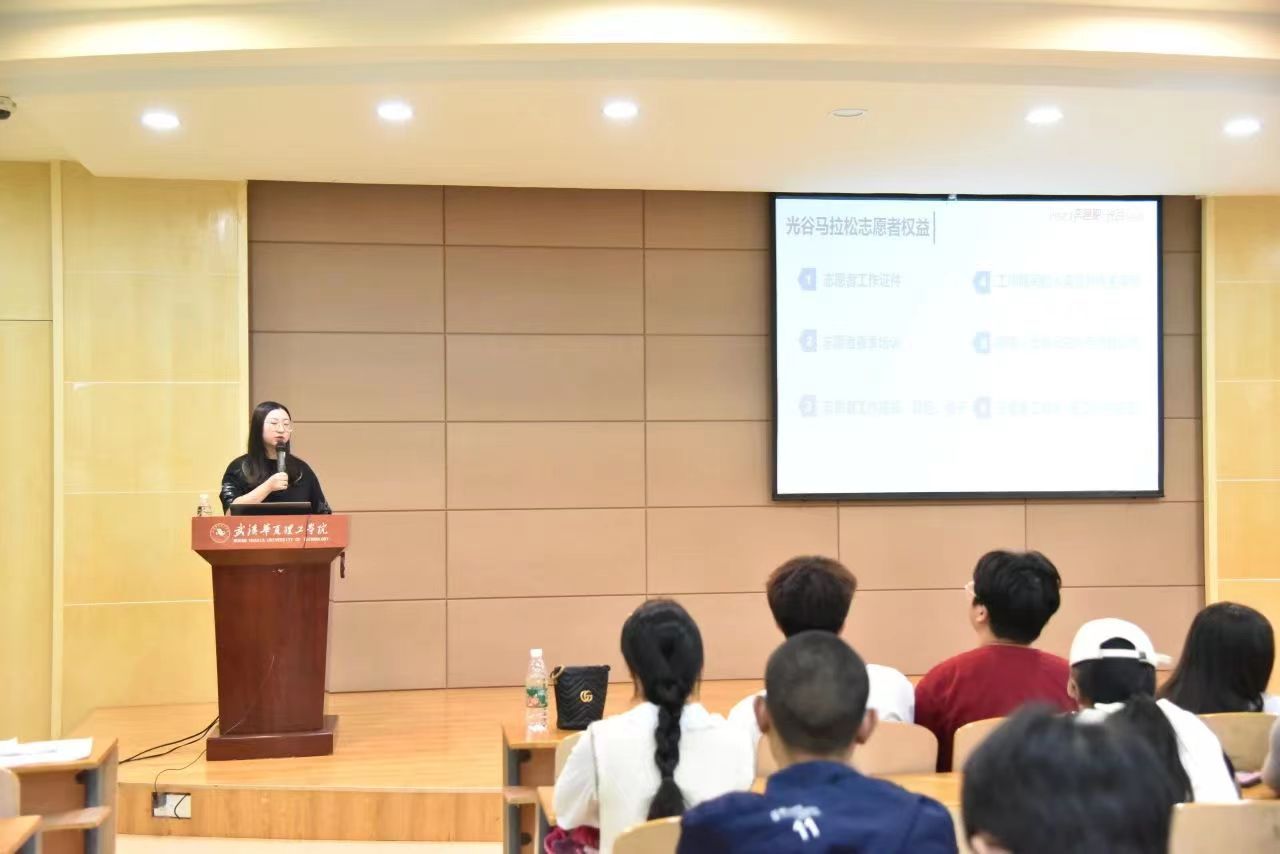 马拉松组委会志愿者负责人王梓桐给我校师生志愿者培训