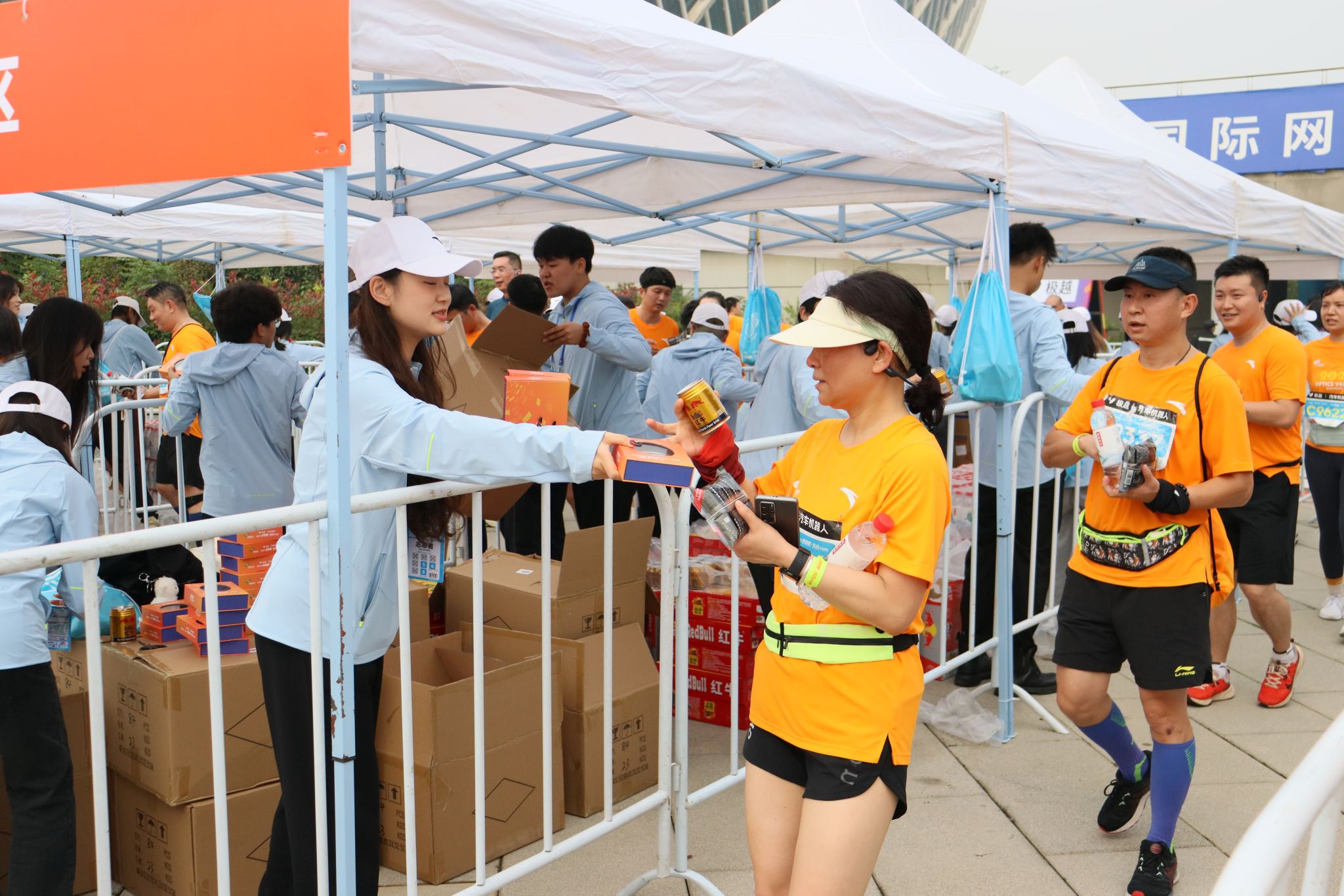 赛场上,志愿者们一边为参赛者们加油鼓劲,一边手持补给物资准确及时地在跑者经过时递到对方手上。“补给递出时选手由衷的感谢和脸上洋溢的笑容,以及我们热情呼喊时选手们更加热情的回应,都让我深深触动。愿赛事越办越好,明年我还要来!”物资发放志愿者施雨说道。