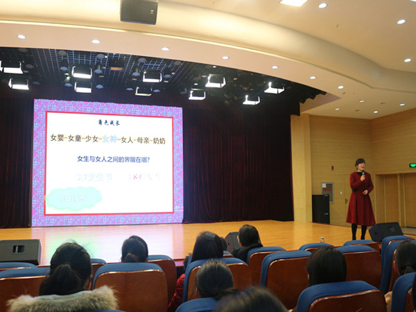 3月7日是许多高校的“女生节”,在这天许多女生会收到“惊喜”,而今年的商学院女生所收到的“惊喜”就是这场具有特殊意义的讲座。讲座由商学院学生会主席苏一同学开场并对郭定芳老师做简要介绍。在郭老师的讲授开始前,她先利用两张图片使大家以一种平静的心态聆听讲座,提出了她所认为的女生存在的弱点,比如:成就意识偏弱、心理素质欠佳等;并告诉大家如何解决生理及心理上的问题。同时郭老师也告诫大家许多女性生活应注意的事项,她提出了女性成功的五大要点:拥有多种目标、掌握必要技能、保持发展的眼光、坚持独立自主、掌握与异性交往的技巧;她告诉大家必须学会依靠自我、拥有精神与思想上的独立。在谈及男女恋爱时,郭老师利用多种事例进行分析,为同学们解决了许多生活中的困扰。