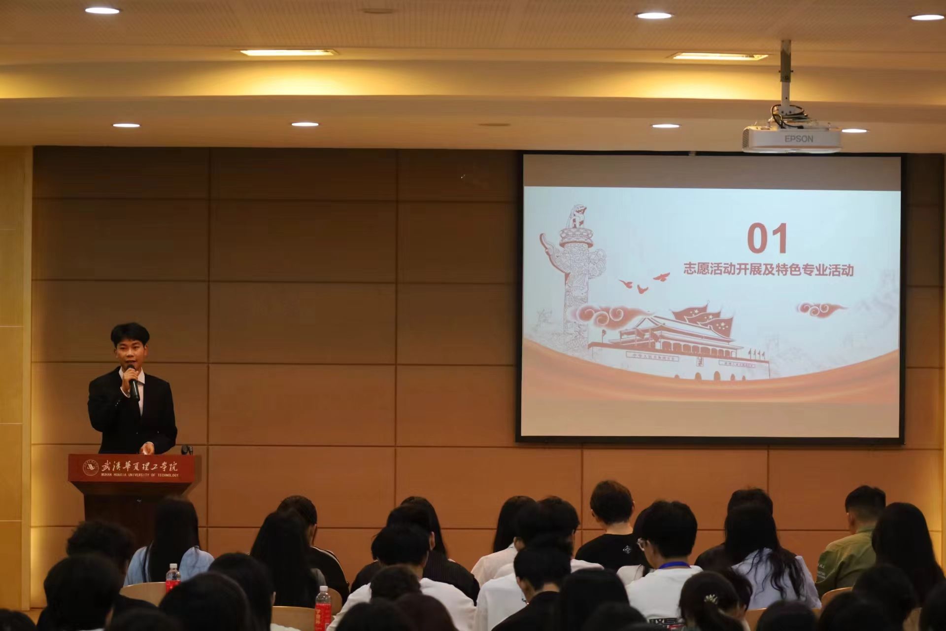 各院代表发言完毕后,本次活动的邀请嘉宾湖北第二师范学院、汉口学院、武汉设计学院、武汉传媒学院、武汉职业技术学院的青年志愿者代表们相继上台发言。介绍了他们所创办的品牌特色活动和具有代表性的志愿服务活动,分享了活动经验。