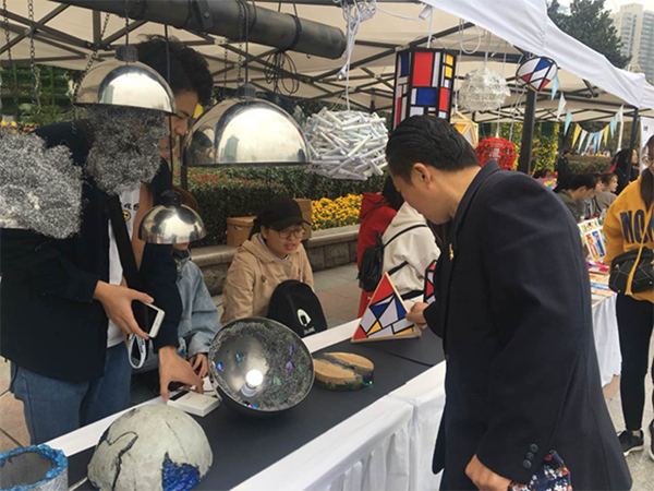 在参展的过程中吸引了大量前来观展的市民游客们。同学们热情的向他们介绍作品的设计理念和设计风格,受到市民游客们的夸赞与褒奖。市民游客称同学们的作品是把生活中常见又不起眼的东西结合起来,再加一些奇思妙想创造出这些极具创意又环保的灯具作品。同学们在售卖期间深刻体会到了作为一名销售人员所会遇到的困难,在人生道路上增添了新的色彩。