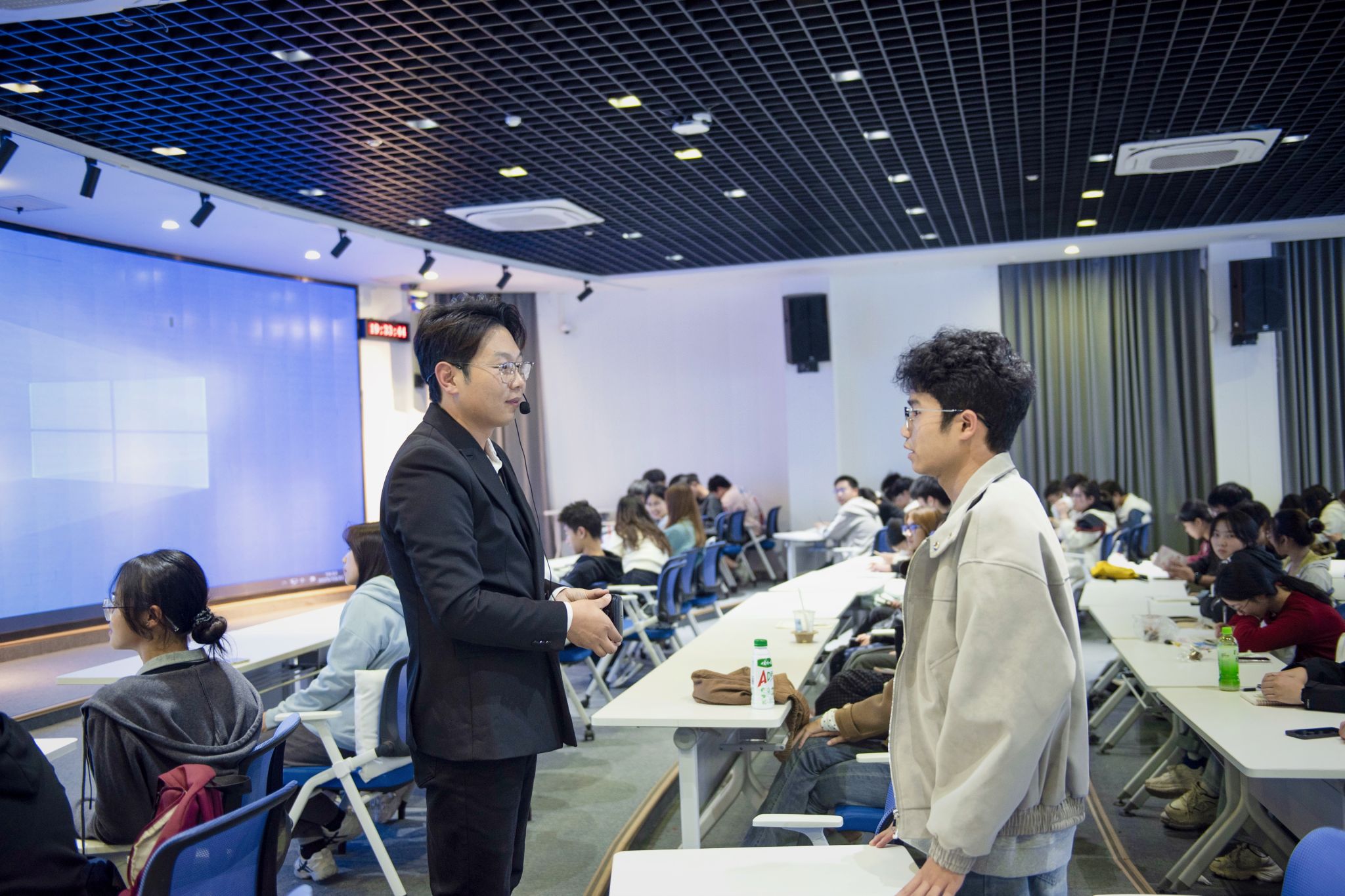 随后陈军老师与在场的大学生们展开了互动提问:“哪一次志愿者经历让你印象深刻?”“在地铁站帮助迷路的老爷爷找到回家的路”、“参与中华鲟放生保护活动”,两位同学体会到了“帮助他人的快乐”与“守护自然的责任”。陈老师鼓励道,“这些小事看似平凡,却让能让我们明白,志愿服务不是遥不可及的壮举,而是融入日常的善意与坚持。”